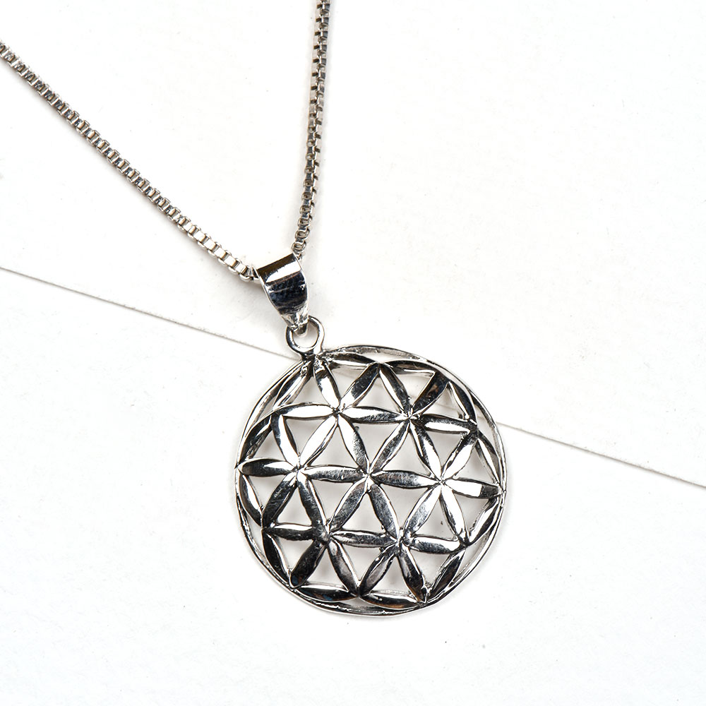 Round Sacred flower of life 92.5 Sterling Silver pendant is an example of fine craftsmanship by Indian artisans. It is considered very auspicious and is the perfect gift to your sister, friends , mother on wedding anniversaries, birthday or on graduation ceremony.