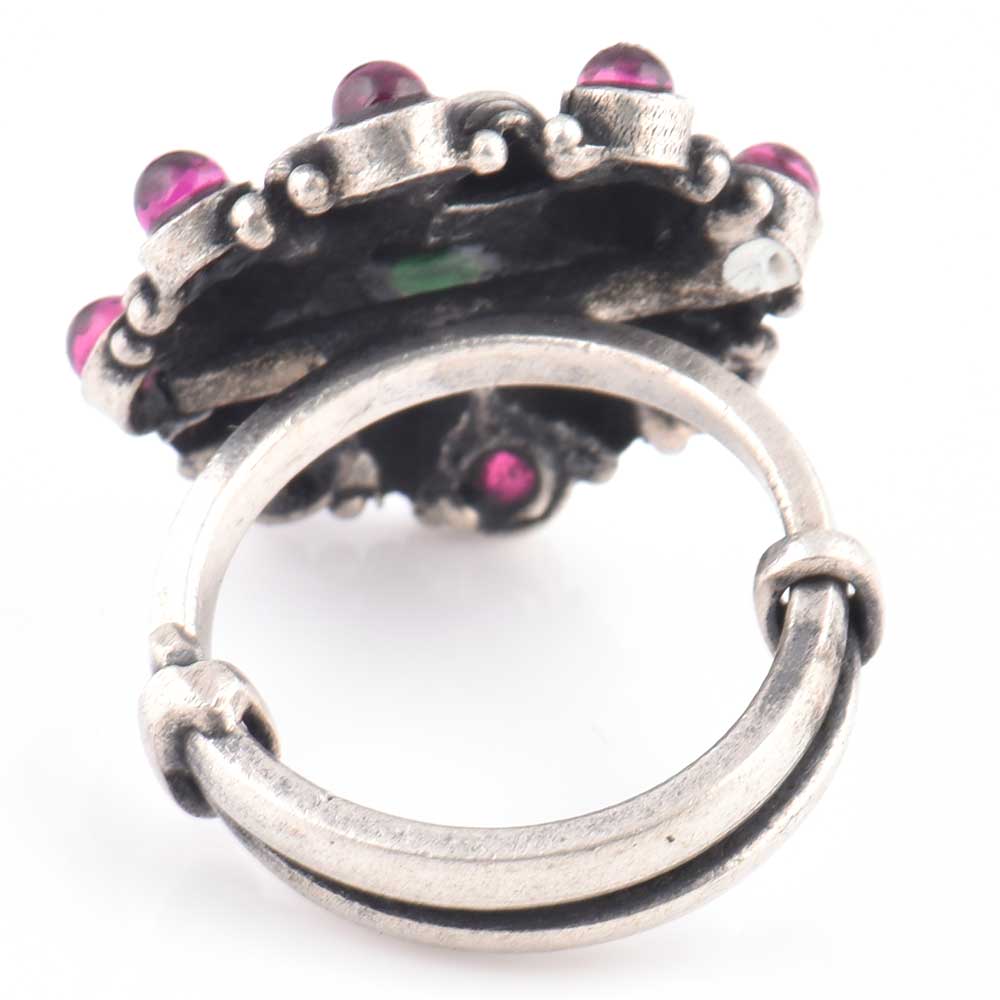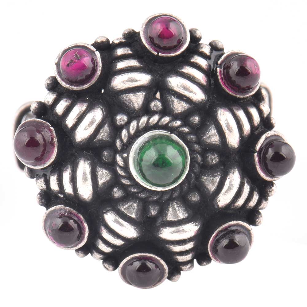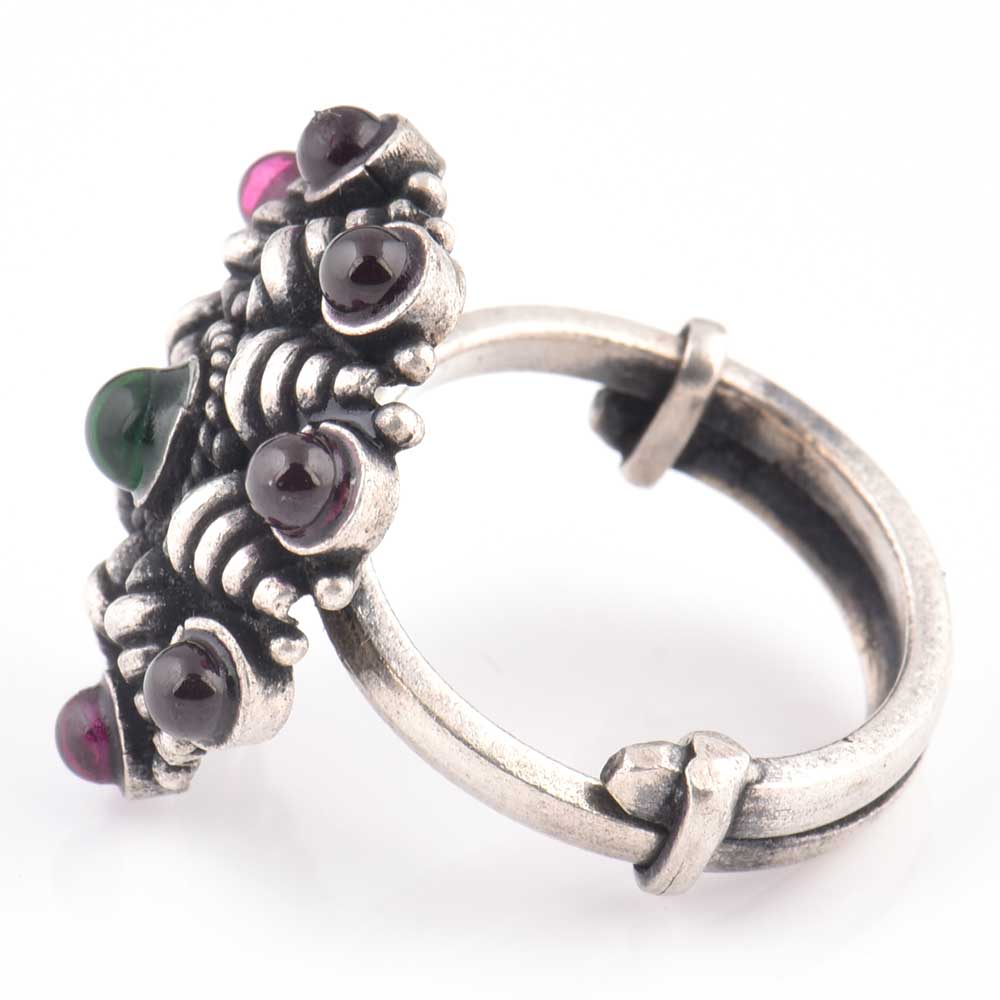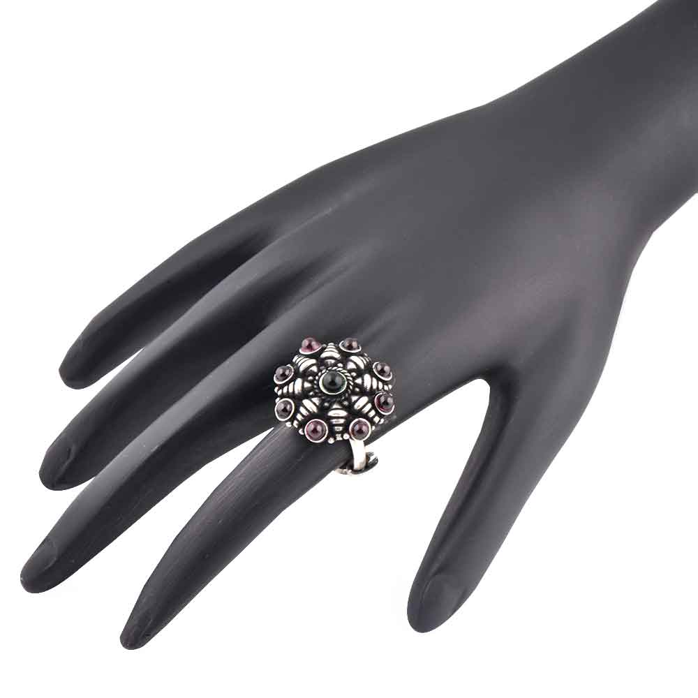 Exclusive wedding wear 92.5 Sterling Silver ring with conch design and starry floral design with many amethyst and single onyx in the centre makes it the best fashion accessory for engagement, reception, souvenir, parting gift or birthday gift.