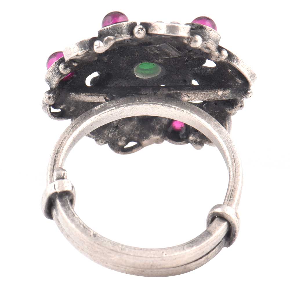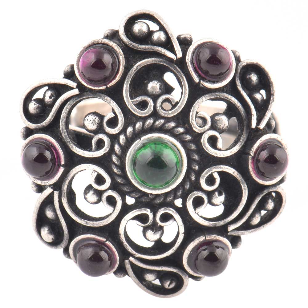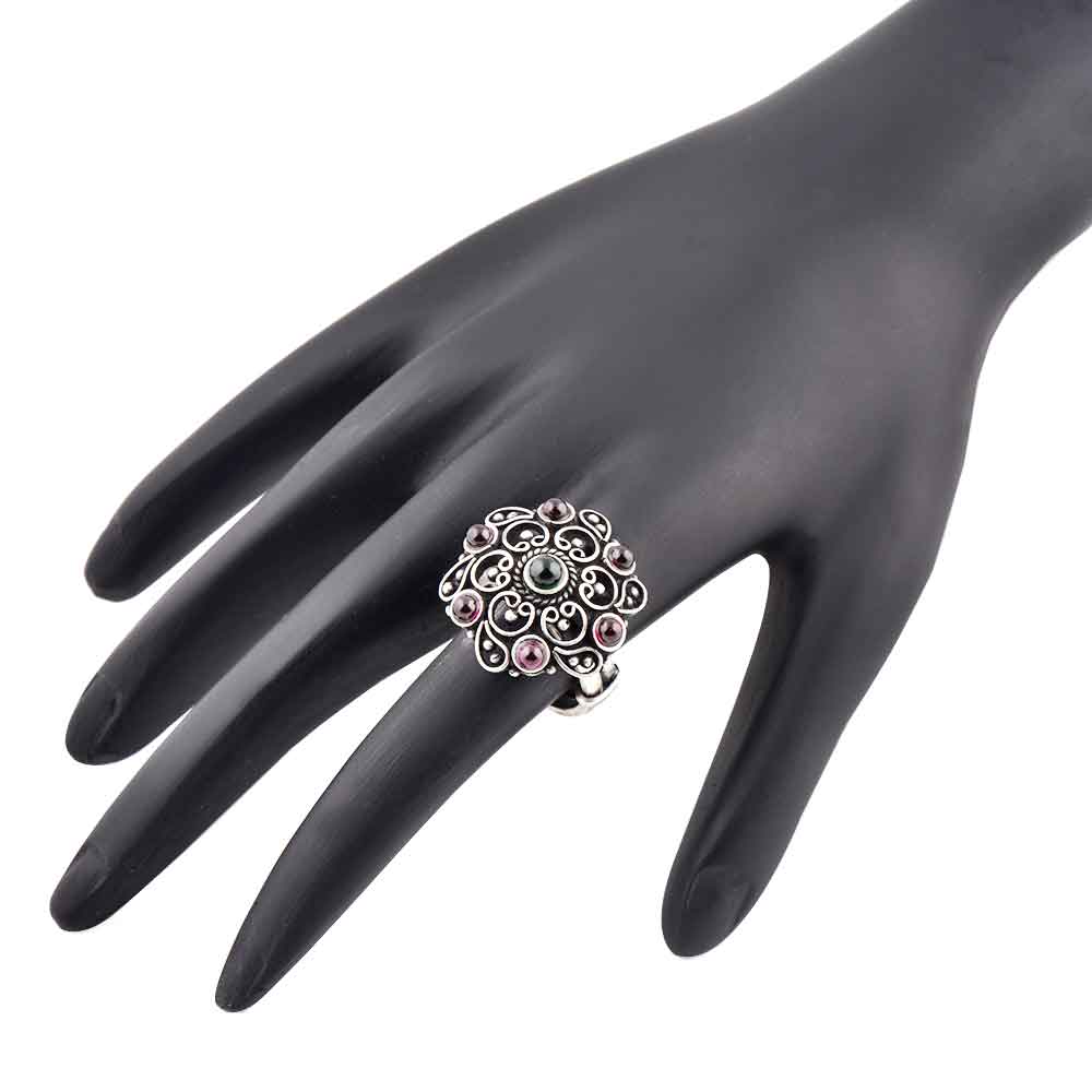 92.5 Sterling Silver Ring has a traditional stoned delight acts as a party stopper engraved with amethyst and onyx stones