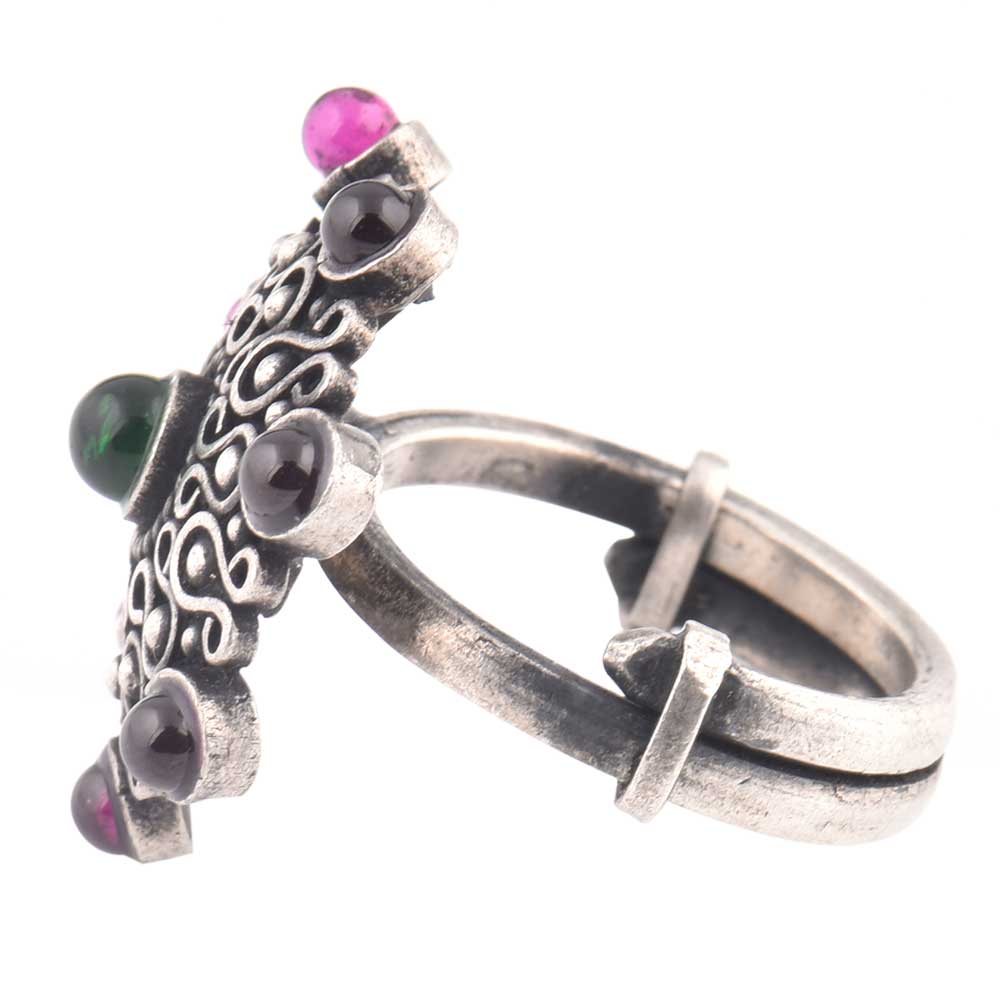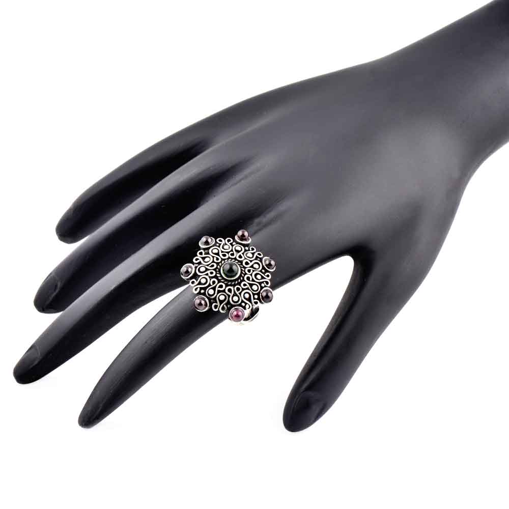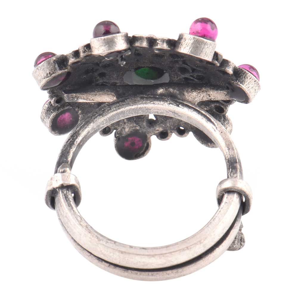 Amethyst Studded 92.5 Sterling Silver Ring with traditional motifs and design with green onyx is the ideal accessory for that perfect date , wedding , cocktail party , bridal shower, graduation ceremony for your sister, mother, wife ad special friend or date.