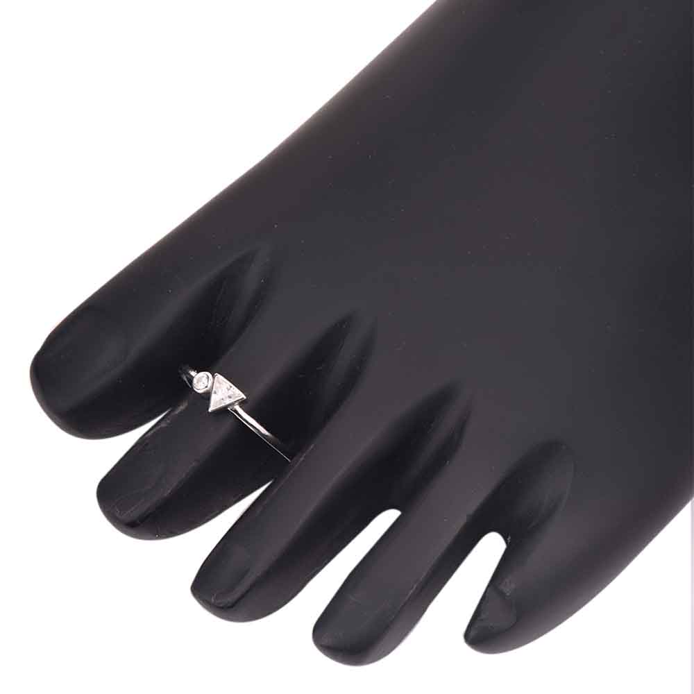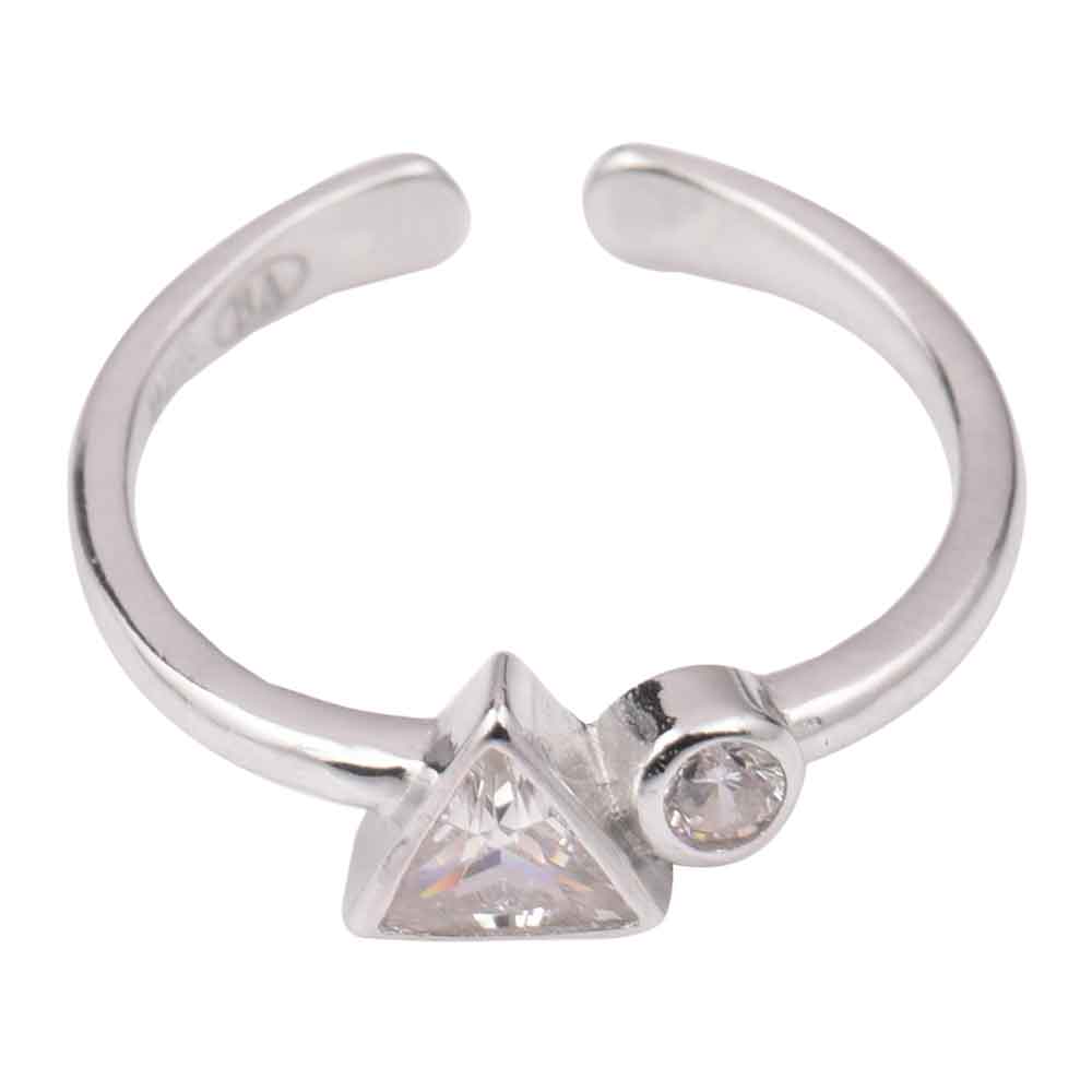 92.5 Sterling silver Toe Ring With Triangle and round American diamond studded jewelry. It can be adjusted as it has an open back. Gift it to your near and dear ones, sister, friend and mother on anniversary, birthday or wedding.
