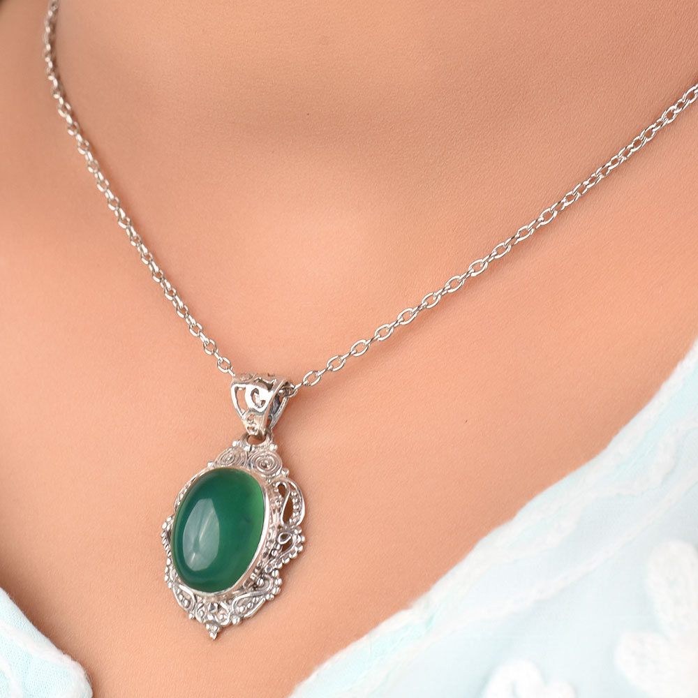 Dazzle everyone with our silver pendant chain for women made in 925 Sterling Silver and Semi-Precious Stone green onyx. Suitable for Any Season these pure silver pendant would make a great birthday gift, anniversary gift, mother's day gift, valentine's day gift, Christmas gift, wedding gift.