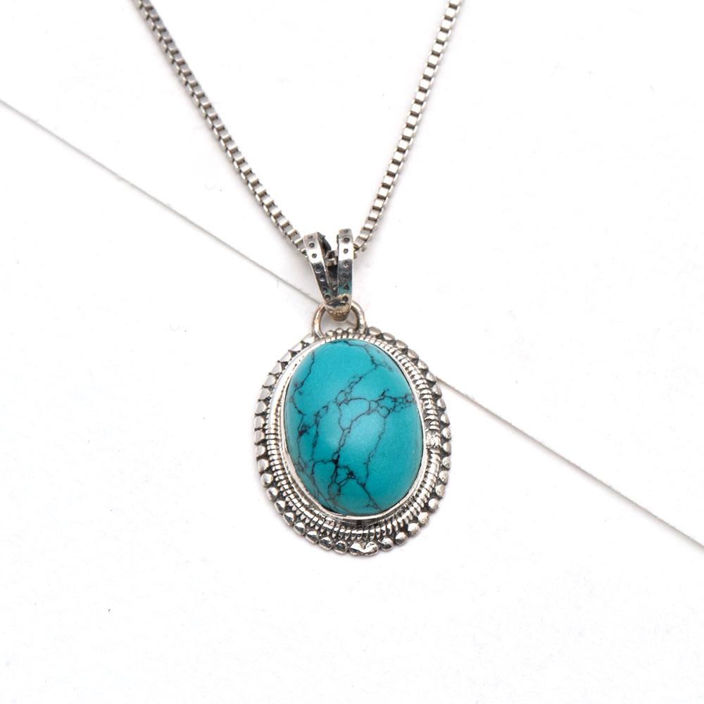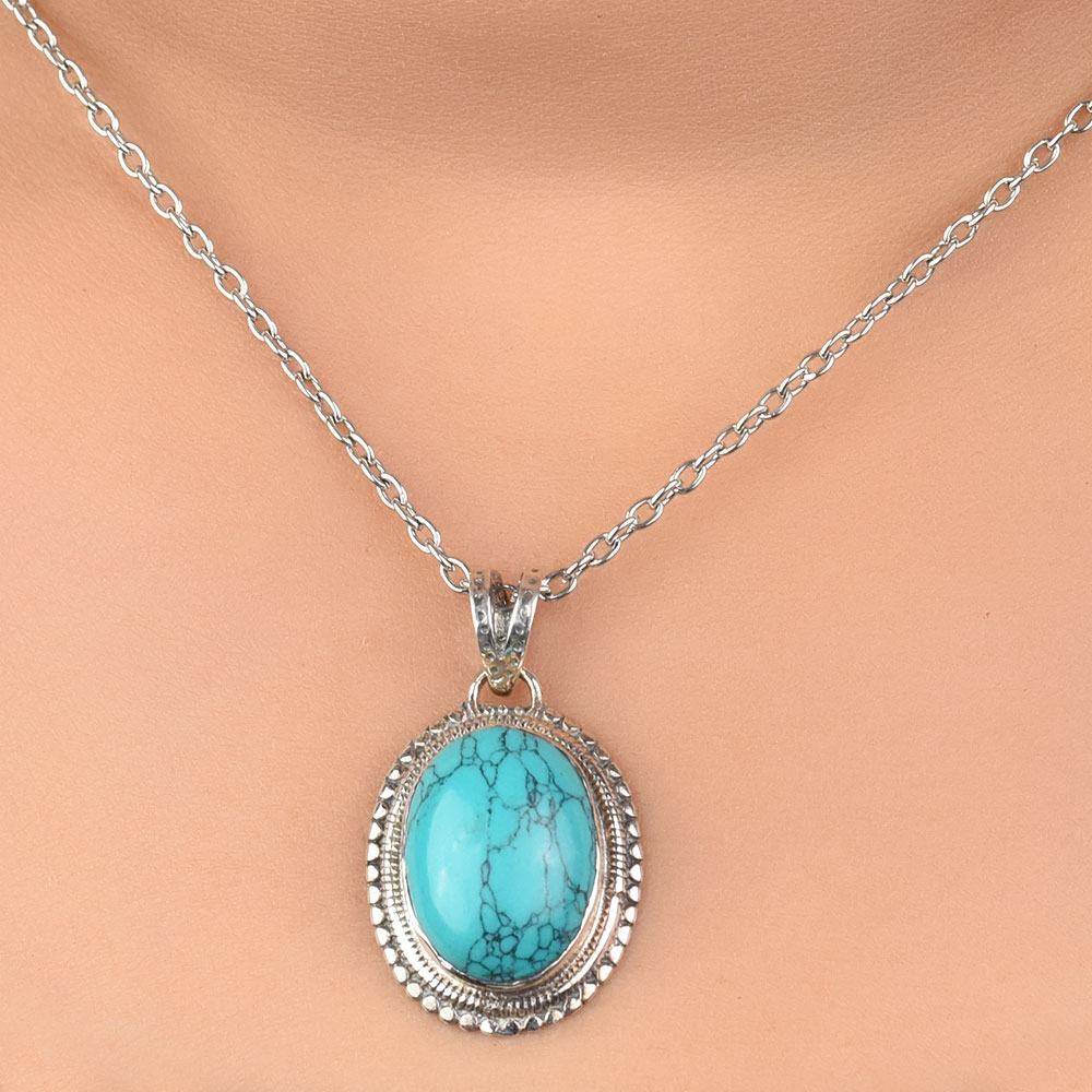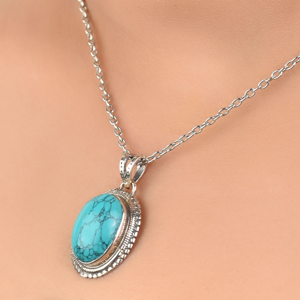 Lovely Turquoise Semi precious stone in Big Oval Shape In Sterling Silver . This pendant jewelry is Best For Gifting. Ideal Gift For All Occasions Such As Birthday, Anniversary, Wedding, Engagement. Gift It To That Someone Special Whom You Love And They Will Cherish It Forever.