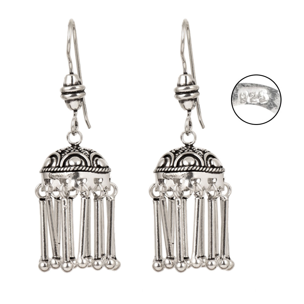 Enhance your look with this traditionally handmade 92.5 sterling silver Jhumkie hanging with pure silver tassel earring pair that looks stunning and is preciously suitable for all kinds of dressy occasions. Perfectly suited for Wedding, Ethnic, Festive Party wear.