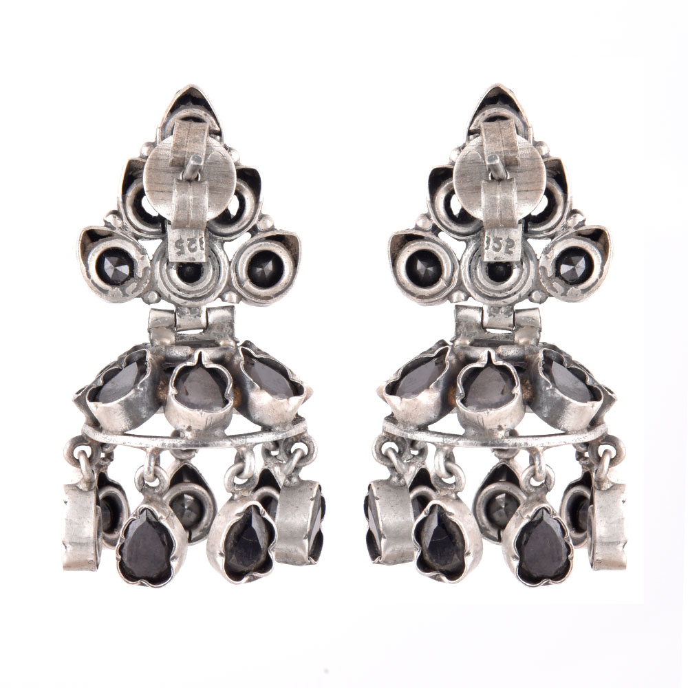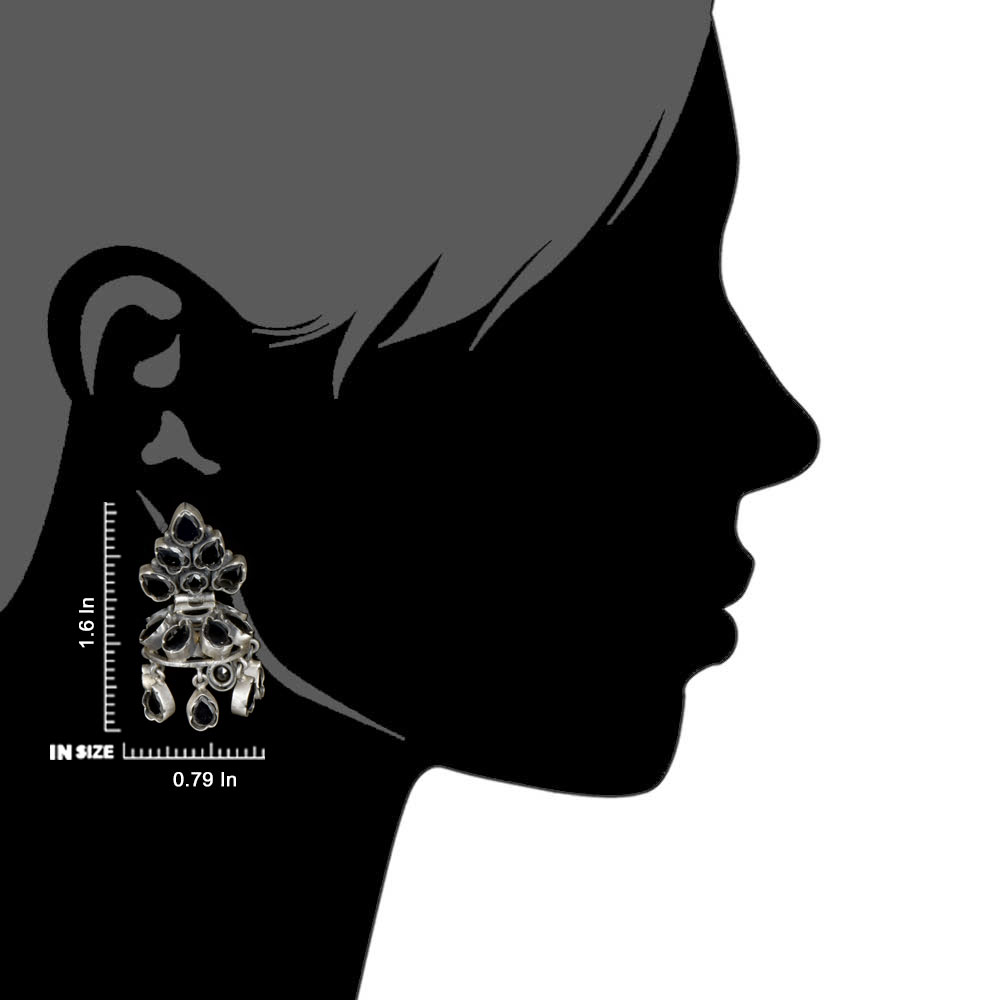 Silver Based Jhumka Style Earrings studded with black Onyx beads 92.5 sterling silver dangle and drop earrings for women that looks stunning and is preciously suitable for all kinds of dressy occasions. Perfectly suited for Wedding, Ethnic, Festive Party wear.