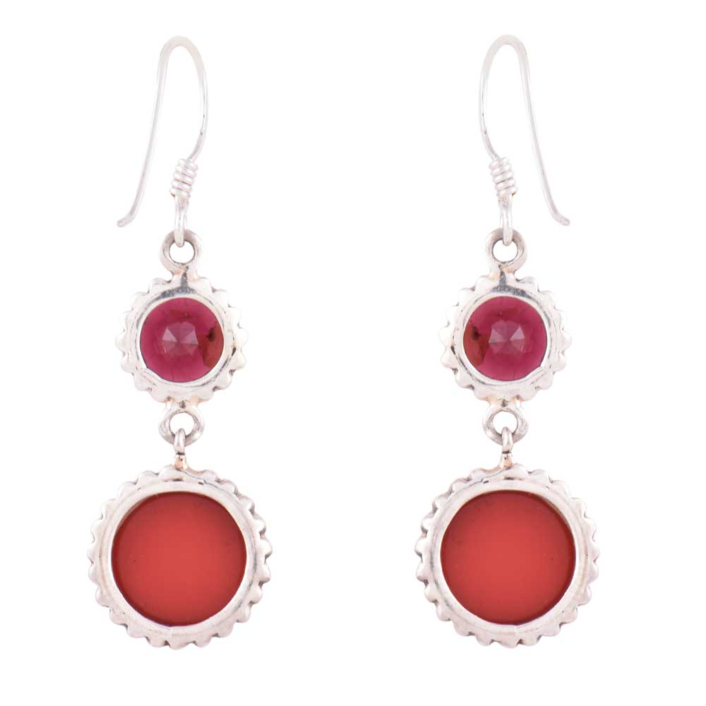 A hanging that suits traditional as well as modern attire is made of multi colored gemstone in 92.5 Sterling silver earrings which is very suitable for women and girls of all age and groups.