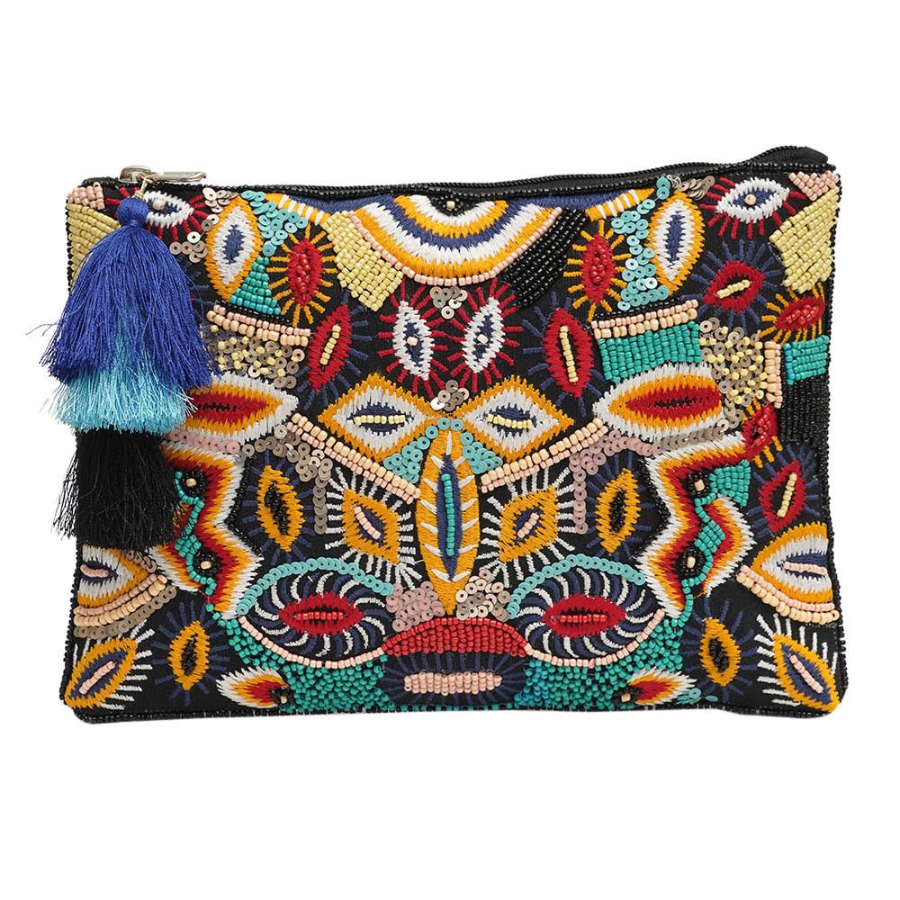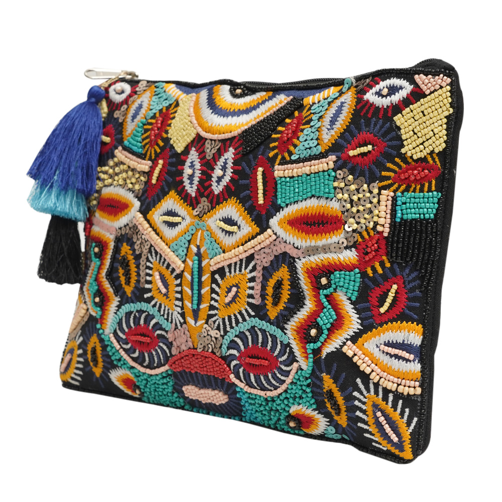 This gorgeous clutch handbag is a must-have for any fashion-savvy woman. Made of high-quality cotton, it boasts a beautiful beadwork design that is sure to turn heads. The multi-coloured engravings of beads add a touch of elegance and glamour to the bag, making it suitable for any occasion. Crafted by professional craftsmen, this handbag is of top-notch quality, ensuring durability and longevity. Its compact size makes it the perfect accessory for women on-the-go, and it can be used as an office bag or for going out and travelling. With its stylish design and practicality, this clutch handbag is an ideal gift for family, friends, or relatives. It is one of the trendy bags for women that are both fashionable and functional. So why not add this stunning piece to your collection of handbags for women today and elevate your style game?.