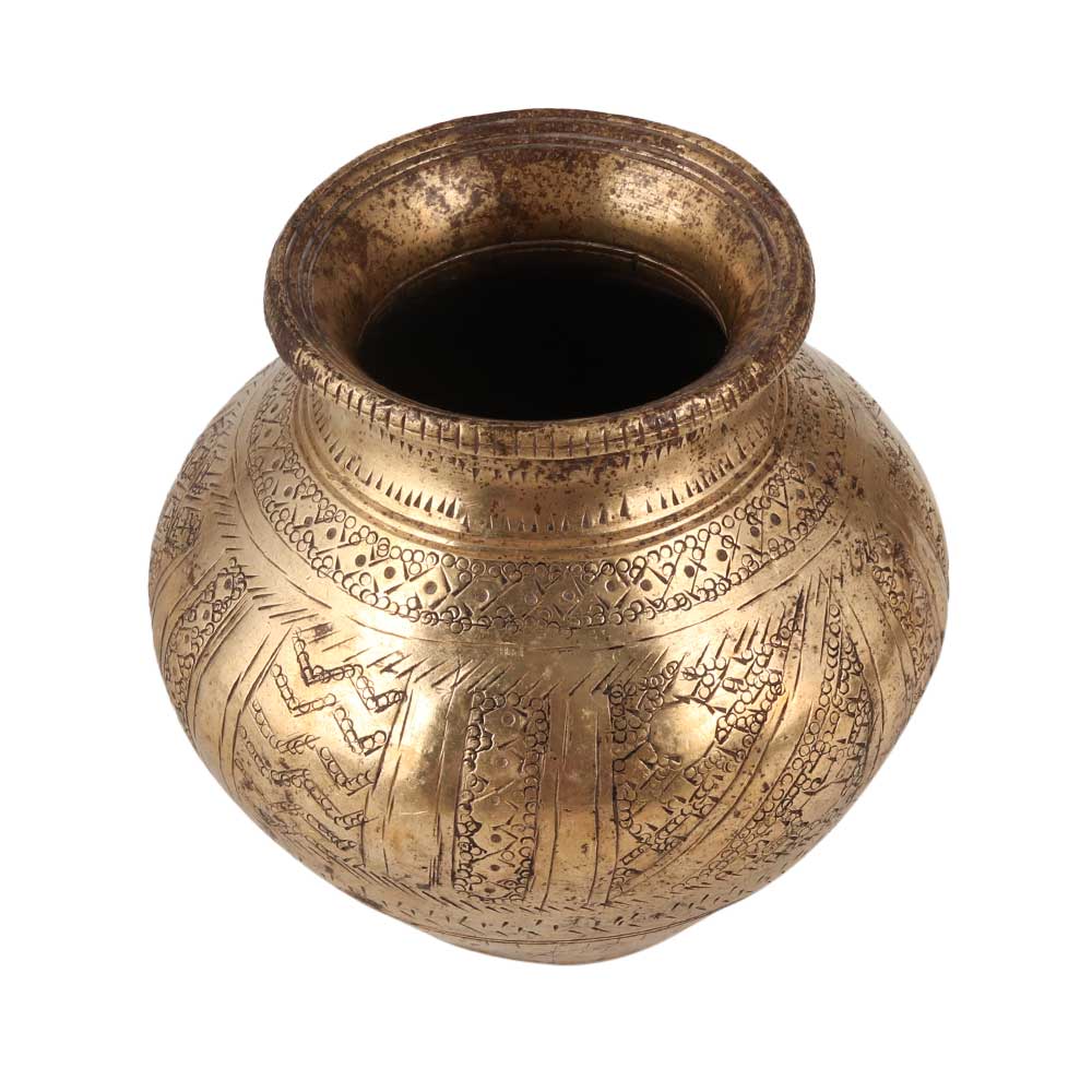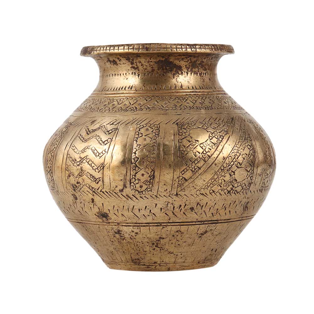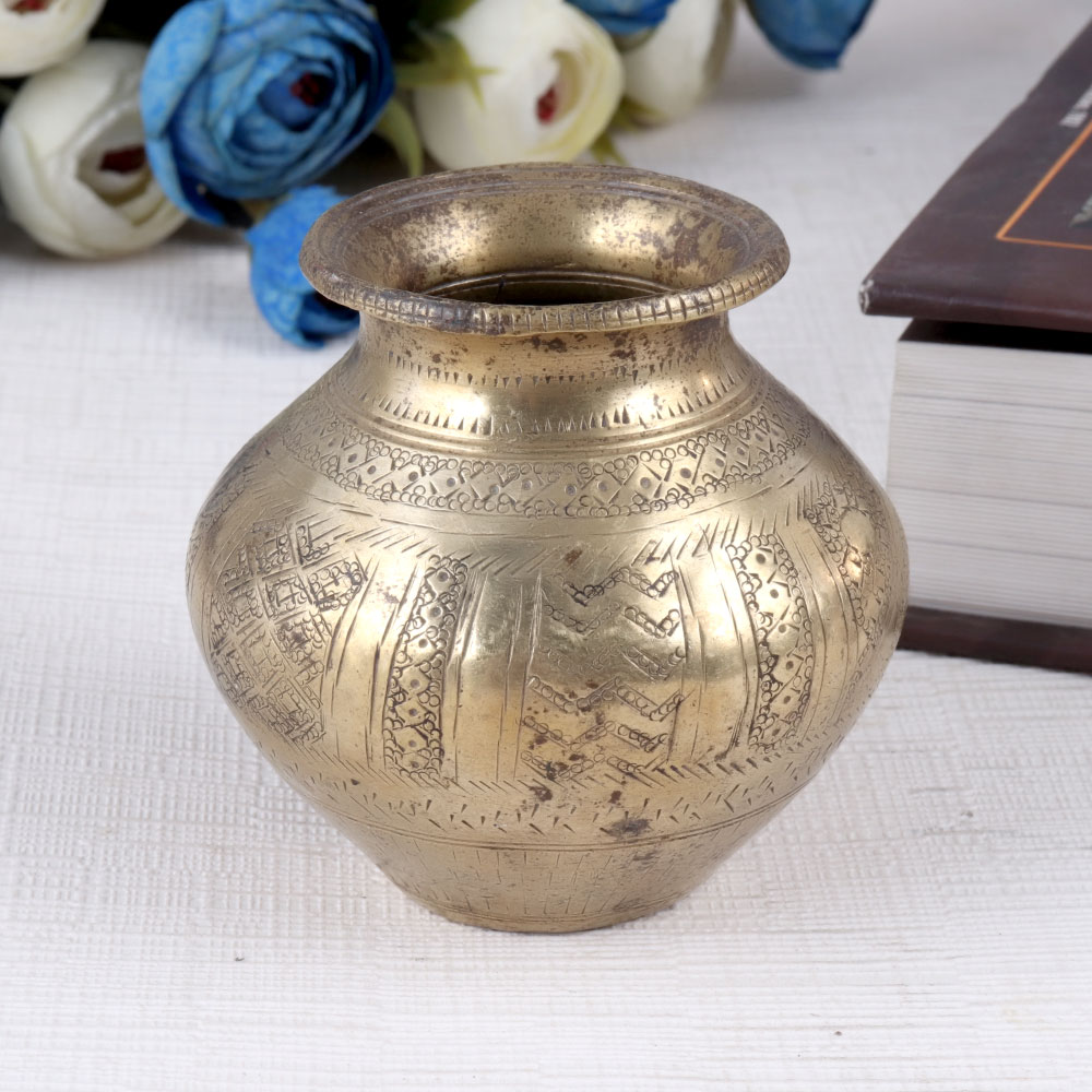 Buy a brass water pot or lota online that is an essential part of many religious rituals and ceremonies in India. This beautifully crafted pot is made from best-quality brass material and is engraved with intricate patterns and designs. It is used to store holy water during rituals, havans, and auspicious functions. The brass water pot is also a versatile item that can be used as a decorative piece or an indoor flower pot. It is also commonly used during Pooja to offer water to the sun god or milk to the Shivling. The brass water pot is not just a functional item but also a work of art that adds charm and elegance to any setting making it a perfect gift for every special and festive occasions to your near and dear ones.