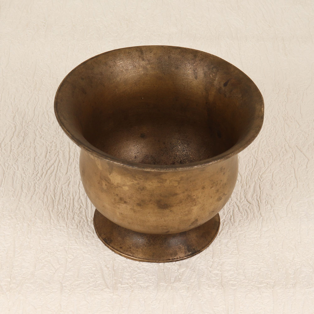 Buy a Vintage Brass Kumkum Bowl online that is a testament to the rich cultural heritage of South Indian artistry. Handcrafted by highly skilled Indian artisans, this meticulously designed piece is made from high-quality brass, ensuring durability and an authentic touch. The antique brown finish imparts a timeless charm, evoking a sense of tradition and reverence. This ornate kumkum bowl serves as a cherished companion during prayers, rituals, and havans, holding the sacred kumkum tilak. Its versatile design allows it to seamlessly adorn spaces within homes, offices, restaurants, hotels, or cafes, particularly in prayer rooms. Not merely a religious accessory, this bowl stands as a remarkable decor item, enhancing the ambiance with its vintage allure. Enthusiasts of antiquity will find joy in adding this piece to their vintage collections. Additionally, it makes for a thoughtful and meaningful gift for your family, friends or relatives on special, festive, or auspicious occasions, symbolizing the preservation of tradition and the sharing of blessings. Embrace the essence of cultural craftsmanship with this timeless brass kumkum bowl, a fusion of art and spirituality.