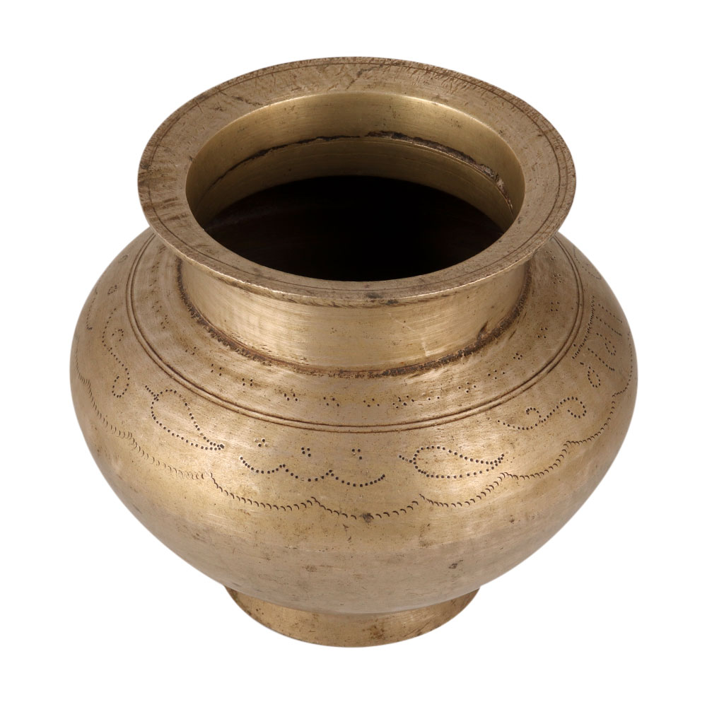 Embrace the heritage and elegance of Indian craftsmanship with a stunning brass holy water pot that is a truly remarkable treasure. Buy this brass holy water pot online which is also known as a Lota, in an antique brown finish. This magnificent piece is traditionally handmade by skilled Indian craftsmen, making it a captivating addition to any decor. With a rich history spanning centuries, this brass pot has been an integral part of Indian households and temples. The holy water pot holds great significance in various religious practices. It is commonly used to offer water to deities, the sun god, and the Shivling. Additionally, it serves as a vessel for storing sacred water from the revered River Ganga. During Hindu rituals, auspicious functions, and havans, this pot takes center stage. This brass pot can be utilized as an indoor flower pot, enhancing the beauty of your living room or patio garden. Moreover, its timeless charm makes it an ideal gift for your family, friends, or relatives on special, festive, or auspicious occasions.