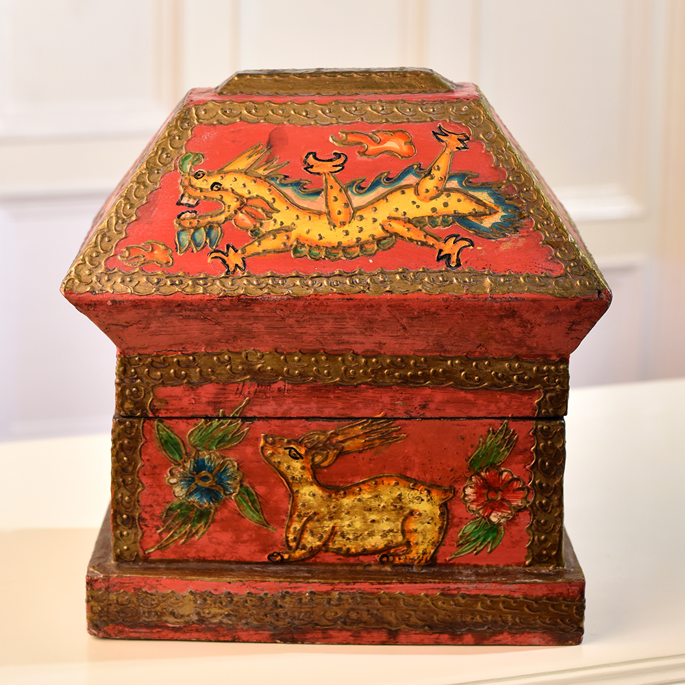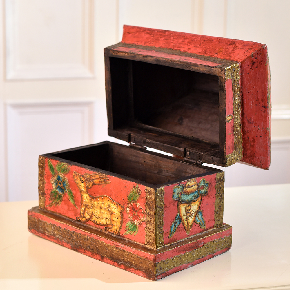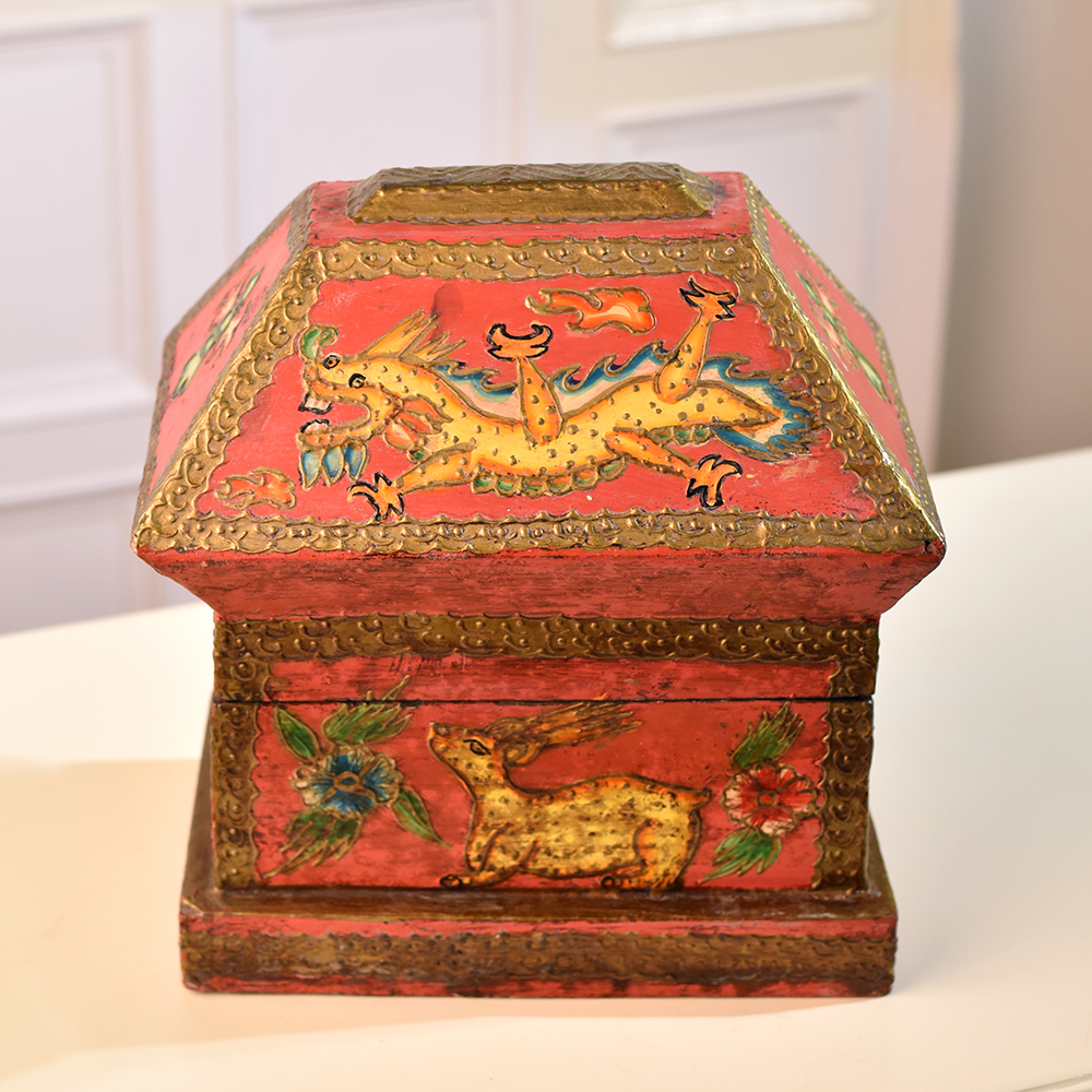 Buy a Wooden Hut-Shaped Jewelry Box online that is a fusion of functionality and aesthetic appeal. This charming box is not merely a storage solution, it's a piece of art designed to elevate any space. Crafted with precision, the hut shape adds a rustic charm, while the multi-colour finish brings vibrancy to your surroundings. Adorned with intricate engravings of dragons, animals, and flowers, this box tells a tale of craftsmanship and attention to detail. The delicate designs create a captivating visual that adds a touch of elegance to your home, office, cafe, restaurant, or hotel. Its versatility extends beyond personal spaces, making it a captivating addition to exhibitions. Perfect for storing jewelry and small items, this box doubles as a stunning display piece. Its beauty transcends boundaries, making it an ideal gift for your family, friends or relatives on special, festive, or auspicious occasions. Embrace the fusion of utility and artistry with this Wooden Hut-Shaped Jewelry Box that is a timeless treasure for any discerning collector or gift giver.