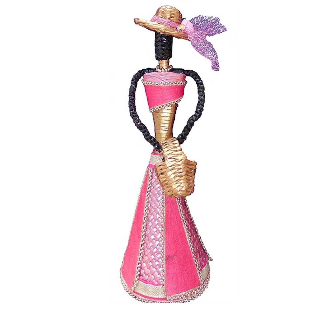 African Doll Showpiece In Pink With Holding Basket With Two Hands