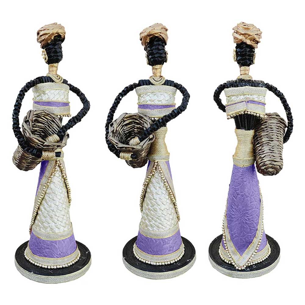 African Doll Showpiece In Purple With Holding Basket With Two Hands