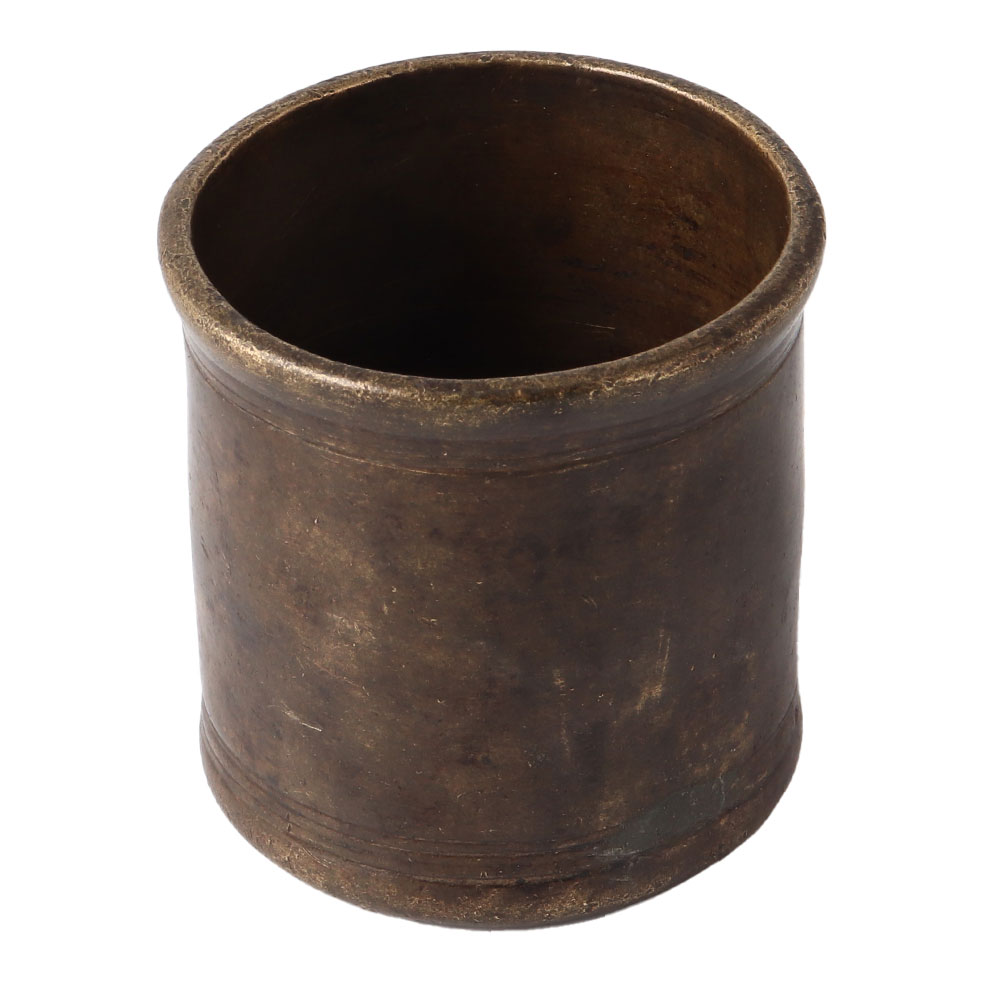 A handmade dark finish brass panch patra cup, which is used to hold water and use it during puja rituals, is an essential component of any puja or pooja. Chanting the energising mantra energises the water that has been stored.