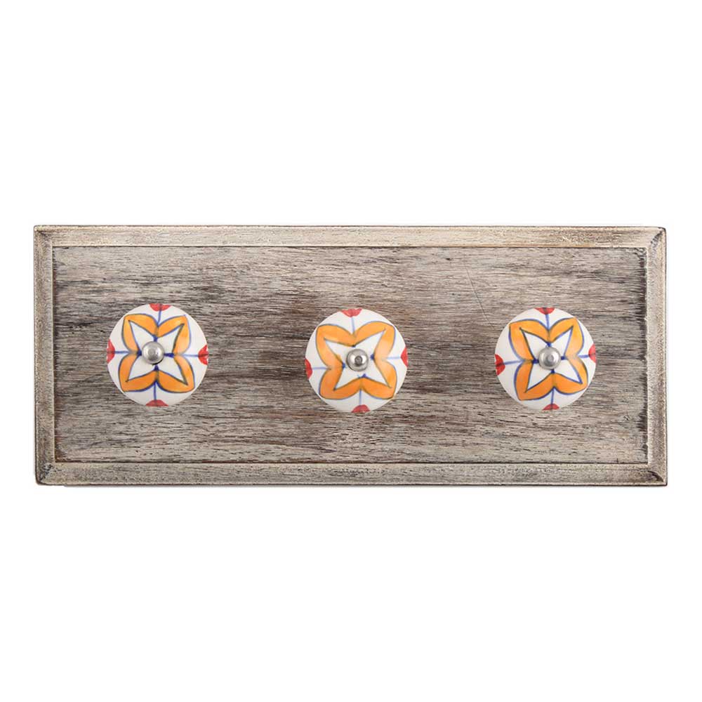 Amaryllis Mustard Flower Ceramic Wooden Hook. A Perfect Complement to the Soft Tone of the Wood are these White Traditional Hat & Coat Hook Made of Genuine Porcelain and Brass. It can be use to Hang Jewellery, Leashes, Towels, Scarves, Light Weight Sweaters, Caps Etc.