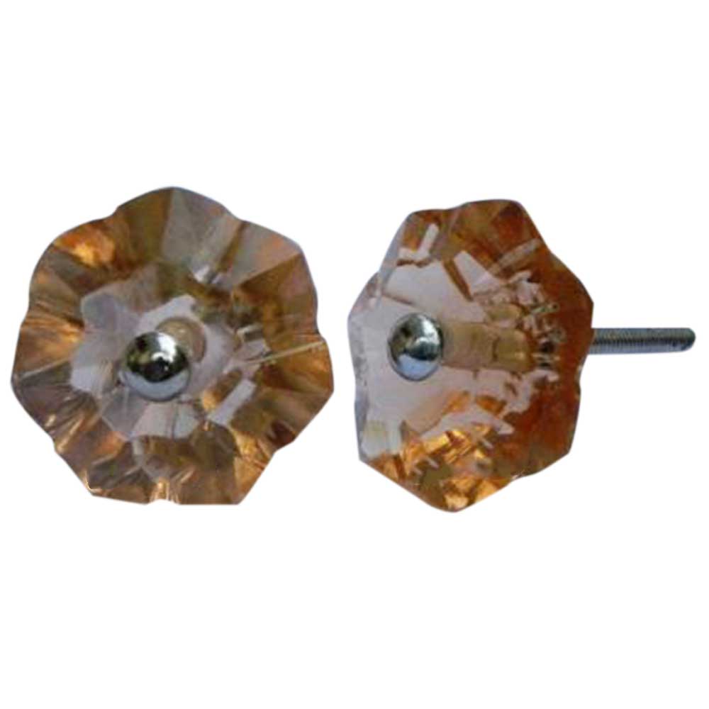Amber Floral Glass Knobs. Ideal for Drawer, Dresser, Cabinet, Wardrobe, Cupboard and Almirah.