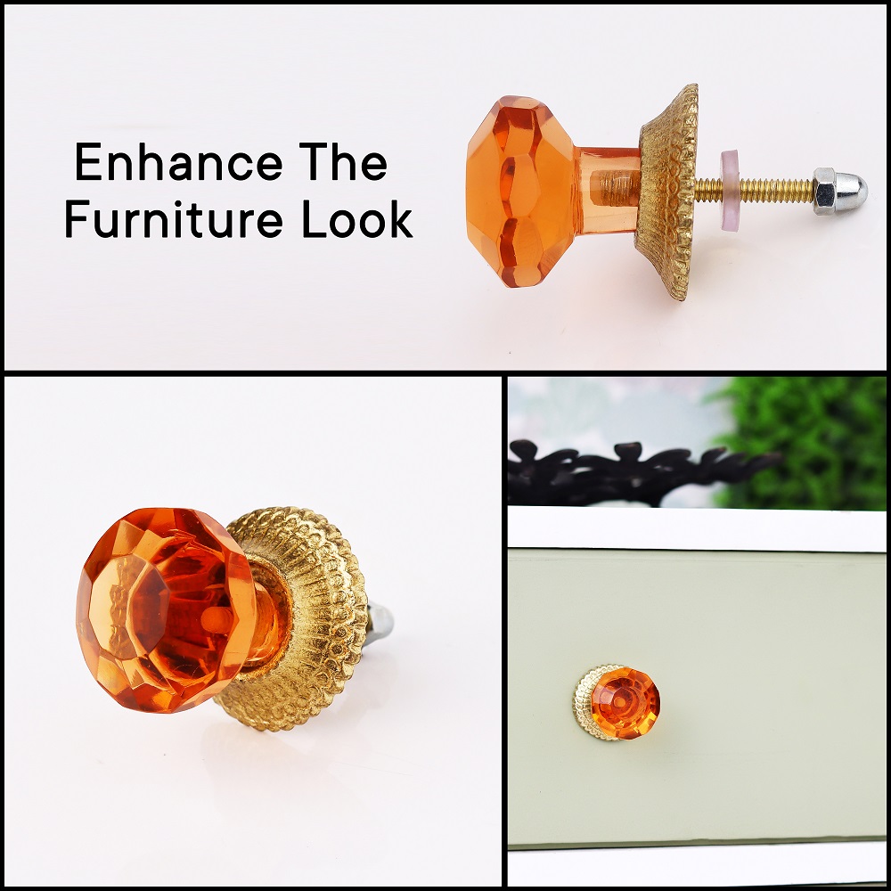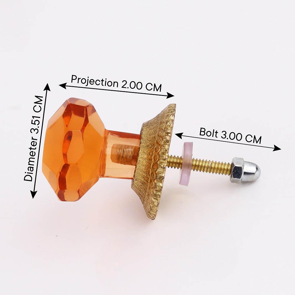 Amber Octagon Shape Glass Drawer Knob. Ideal for Drawer, Dresser, Cabinet, Wardrobe, Cupboard and almirah