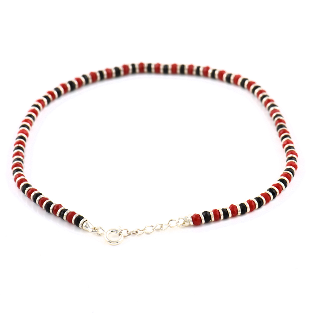 You can wear this black and red crystal beads anklet with any outfit to finish your stylish look. The anklet has an adjuster chain to ensure a comfortable fit and a stunning appearance on your feet. You can wear it with fusion, casual, or Indian outfits, and each design is carved to make your feet happy. Your feet will undoubtedly be noticed.