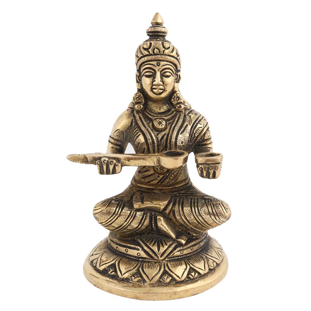 Clasping her favorite musical instrument, this idol has been crafted in with incredible perfection. The antique piece is universally appealing – looks good at almost all places in your home, be it decor or in the pooja room. The idol is also a suitable gift for grandparents and elderly relatives.