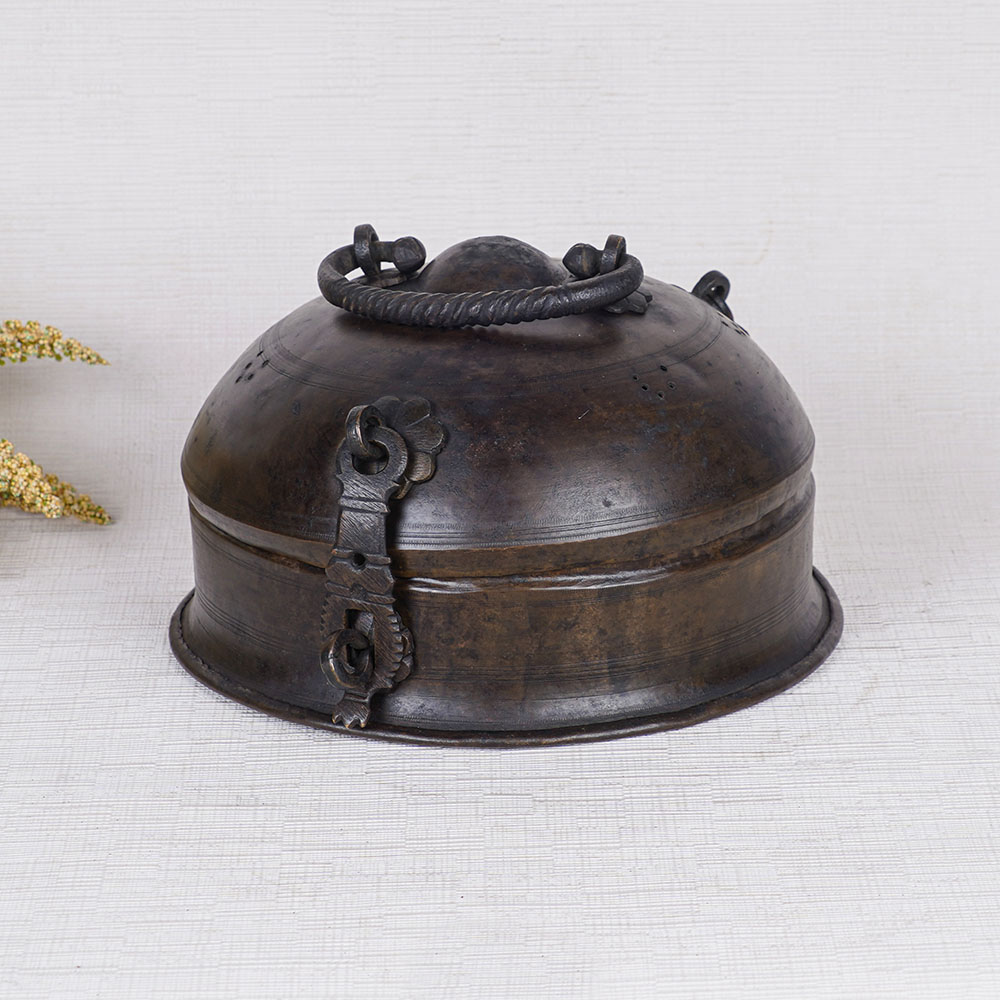 Buy a luxurious jewelry box online that combines timeless elegance with a touch of rustic charm. Its plain design is complemented by a captivating dark brown finish, making it a captivating piece for both decoration and functionality. The jewelry box features a convenient handle on the top, allowing you to effortlessly carry and transport your treasured possessions. It serves as an ideal storage solution for your precious jewelry and gemstones, keeping them organized and secure. Additionally, this versatile piece can enhance the ambiance of your home or office with its antique finish. Equipped with a sturdy latch, this jewelry box ensures the utmost protection for your valuables. Its aesthetic appeal is perfect for displaying at museums or exhibitions, attracting the attention of discerning customers. Furthermore, it makes an excellent gift for your loved ones on special or festive occasions, showcasing your thoughtfulness and admiration. Indulge in the charm of our luxury brass round jewelry box, an exquisite accessory that combines functionality and aesthetic allure effortlessly.