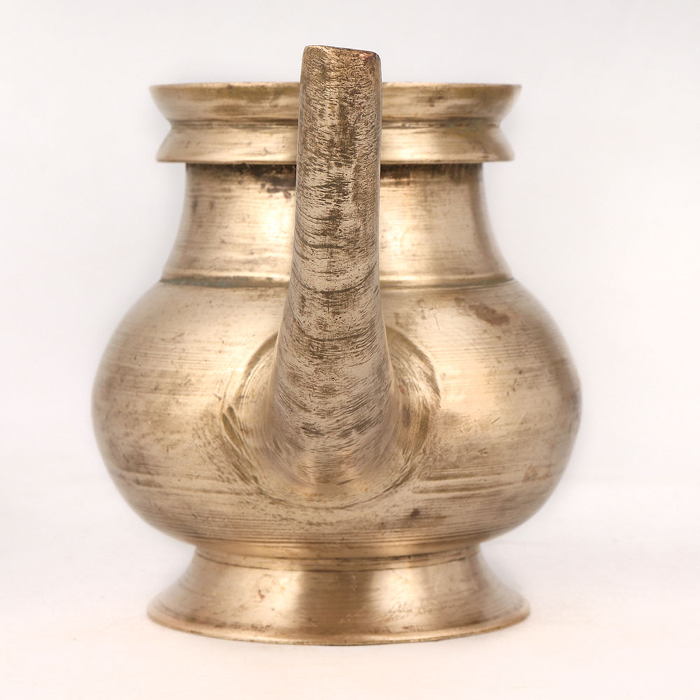 Embrace the divine essence of spirituality with our Brass Holy Water Pot, a timeless masterpiece crafted by talented Indian artisans. This sacred vessel, adorned with an antique golden finish, exudes an aura of tradition and sanctity. Forged from high-quality brass, this holy water pot features an elegant spout, which allows for precise and reverent pouring of water during temple rituals, havans, and ceremonies. Its design embodies both functionality and artistic beauty, making it a perfect addition to any religious or spiritual setting. Beyond its religious significance, this holy water pot holds an undeniable allure for collectors, serving as a testament to India's rich cultural heritage. Its antique golden finish adds a touch of sophistication, capturing the attention of those with an appreciation for art and history. Moreover, this divine creation is not only a cherished possession for yourself but also an ideal gift for your loved ones on special or festive occasions. Share the blessings of spirituality and tradition by presenting them with this meaningful and sacred artefact. Embrace tradition, elevate your spirituality, and cherish the sacredness of every moment with this Brass Holy Water Pot a symbol of devotion, artistry, and timeless grace.