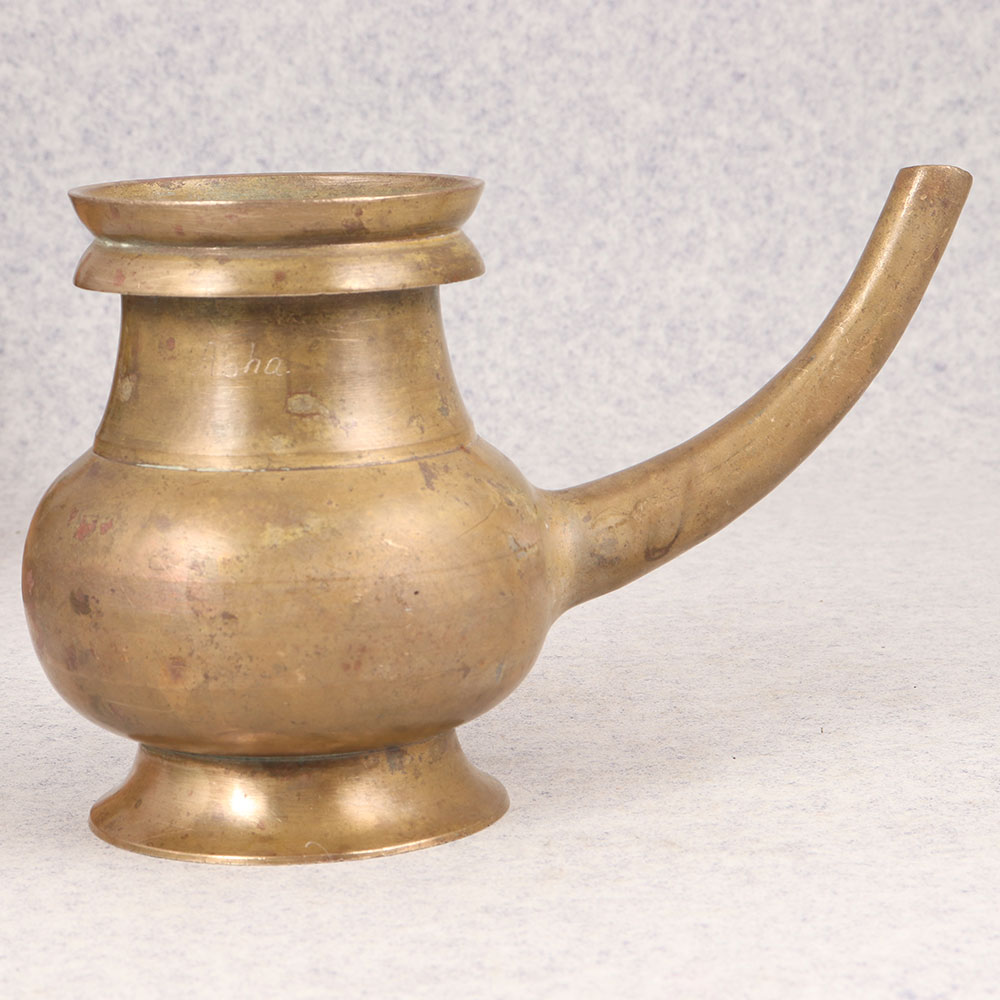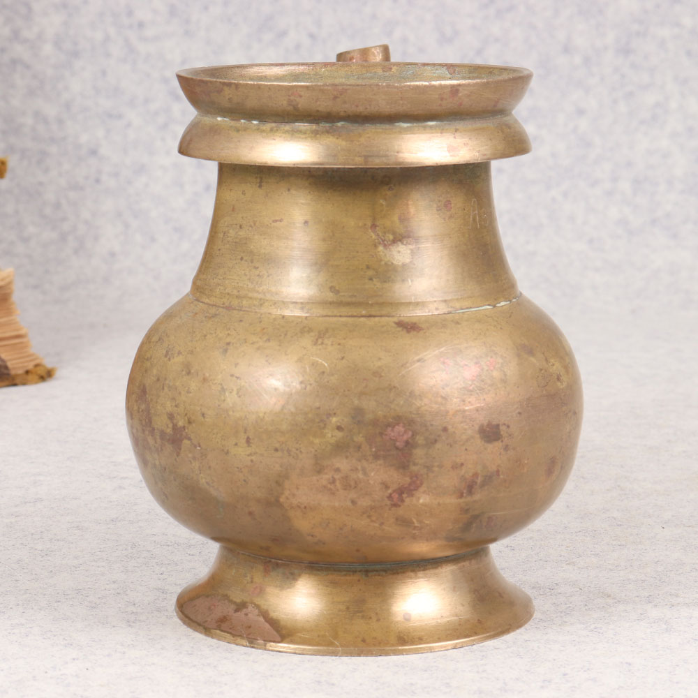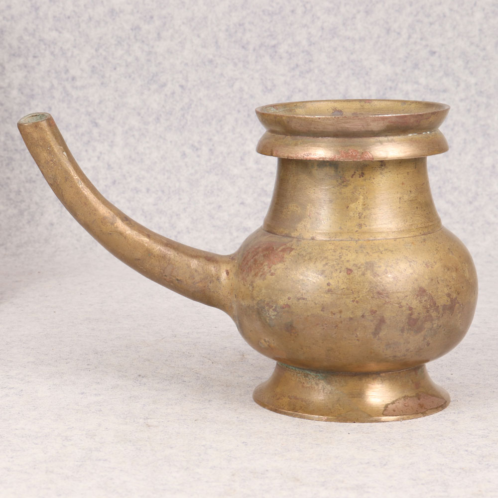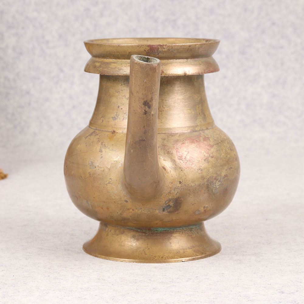 Embrace the timeless charm of our Vintage Brass Sagar Water Pot with Spout that is a sacred artefact steeped in tradition and craftsmanship. Handmade by professional Indian artisans, this exquisite piece boasts a rich antique brown finish, adding an aura of heritage to any space. Originally designed for rituals and prayers at temples, it seamlessly transitions into contemporary settings, making it a versatile addition to your home, office, restaurant, hotel, or cafe prayer room. Crafted from high-quality brass, each pot is a testament to the artisan's dedication and mastery, ensuring durability and authenticity. Its elegant spout allows for easy and precise pouring during ceremonies. Beyond its spiritual significance, this water pot serves as a captivating decorative item, complementing various interiors. Elevate your vintage collection or present it as a thoughtful gift to your family, friends or relatives on special, festive, or auspicious occasions. Embodying cultural richness and aesthetic appeal, this brass sagar water pot connects the past with the present, creating a harmonious blend of tradition and modernity.