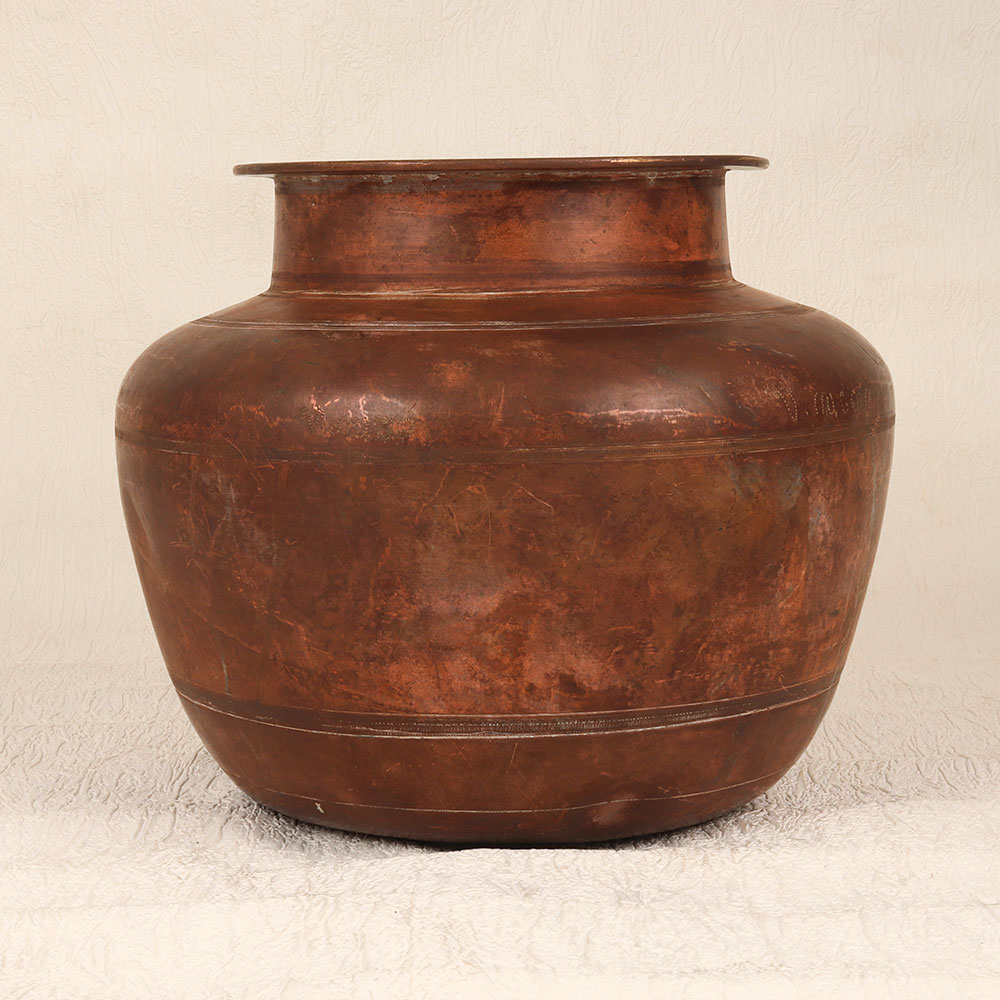 Buy a Vintage Brass Pot online that is a timeless masterpiece meticulously handcrafted by skilled Indian artisans. Crafted from high-quality brass, this pot boasts a rich antique brown finish, adding an air of sophistication and charm to any space. Its unique design and vintage appeal make it a versatile piece suitable for various settings, including homes, offices, restaurants, hotels, or cafes. This handmade beauty serves as an indoor flower pot, elevating your interior decor with its elegant and classic aesthetic. Its distinctive antique brown finish not only adds warmth but also highlights the intricate craftsmanship that went into its creation. Placing this pot in your space not only enhances its visual appeal but also brings a touch of tradition and cultural richness. Ideal for collectors of vintage treasures, this brass pot seamlessly integrates into any vintage collection, creating a captivating focal point. Furthermore, it makes for a thoughtful and meaningful gift for your family, friends or relatives on special, festive, or auspicious occasions, expressing your appreciation for both artistry and tradition. Embrace the charm of yesteryears with this Vintage Brass Pot – a timeless addition to your surroundings.