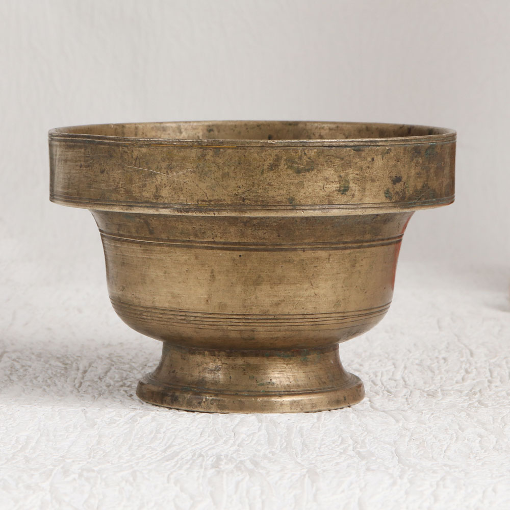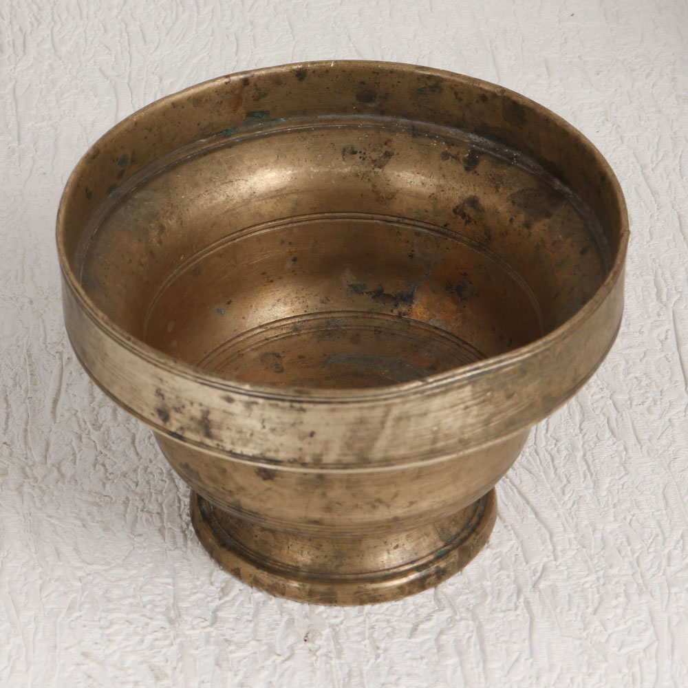 Buy a Vintage Brass Kumkum Bowl in an enchanting antique brown finish which is a true masterpiece of craftsmanship and artistry. This piece is meticulously handcrafted by highly skilled Indian artisans, following the time-honoured traditions of South Indian Art. Crafted from high-quality brass, it exudes an aura of vintage elegance that will effortlessly elevate any space. Versatile and captivating, this kumkum bowl can find a place in your home, office, restaurant, hotel, cafe, or shop, where it serves as a captivating decorative element. Its ornate design and rich patina make it a conversation starter, whether placed on a mantel, shelf, or table top. Beyond its aesthetic charm, this kumkum bowl holds a deeper significance. It is traditionally used during prayers to store kumkum tilak, adding a touch of spirituality to its allure. For collectors of vintage treasures or curators planning exhibitions, this bowl is a must-have addition. Moreover, it makes for a thoughtful and meaningful gift, perfect for special, festive, or auspicious occasions. Share the beauty of Indian craftsmanship and culture with your loved ones by presenting them with this Vintage Brass Kumkum Bowl, a timeless symbol of art, tradition, and spirituality.