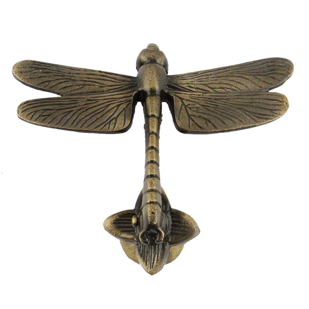 The dragonfly, a symbol of transformation and renewal, is elegantly captured in this door knocker's design. Its antique finish adds to its rustic charm, making it an ideal choice for homes that embrace vintage, eclectic, or nature-inspired styles. The detailed wings and body of the dragonfly lend depth and sophistication, elevating it beyond mere functionality.