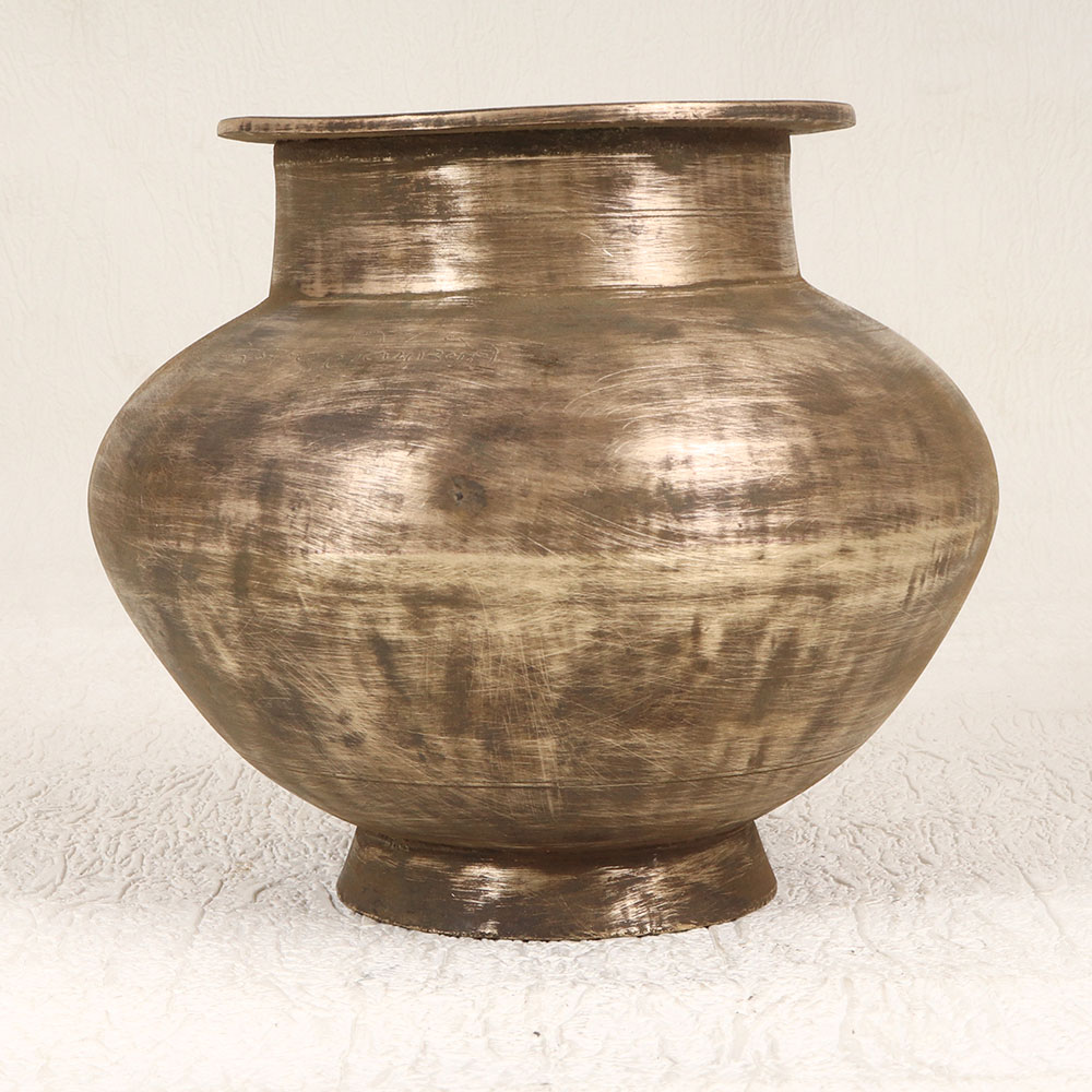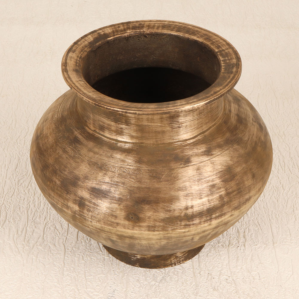 Enhance your spiritual space with our exquisite Vintage Brass Holy Water Pot that is a sacred vessel handcrafted by talented Indian artisans in the revered South Indian Art tradition. This timeless piece, adorned with an antique brown finish, resonates with the richness of history and spirituality. Fashioned from high-quality brass, it serves as a dignified container for holy water during prayers, rituals, and havans. Versatile in function, this pot seamlessly transitions from a prayer room essential to an indoor flower pot, adding an aura of sanctity to your home, office, restaurant, hotel, or cafe. The intricate craftsmanship reflects the cultural heritage and dedication of the artisans, making it a unique addition to your vintage collection. As a thoughtful and meaningful gift, this Vintage Brass Holy Water Pot is perfect for special, festive, or auspicious occasions, allowing you to share the beauty of tradition and spirituality with your family, friends or relatives. Embrace the divine energy and aesthetic charm embodied in this handmade masterpiece.