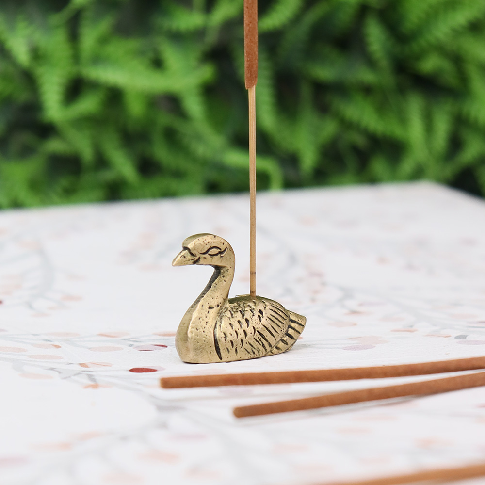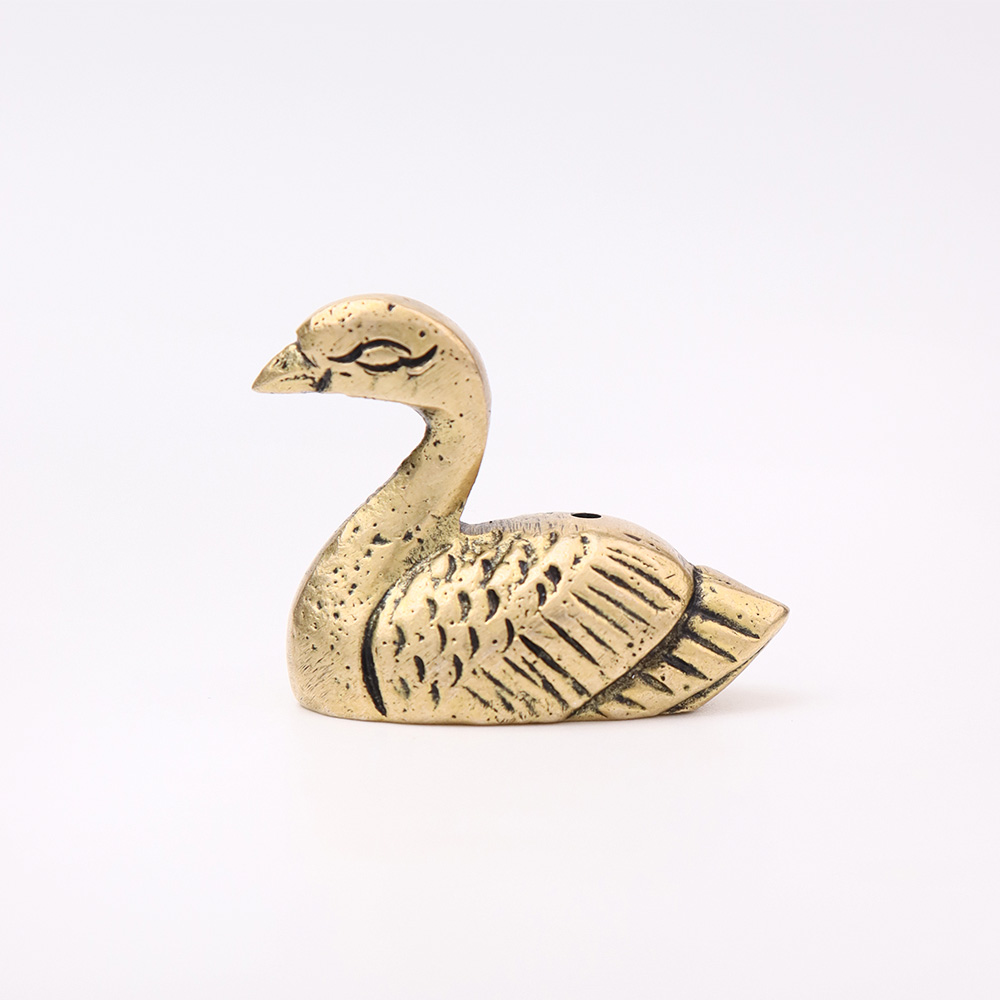This antique golden brass holder serves as both a functional incense burner and an attractive decorative element for any sacred or personal space. Its sturdy design ensures that your incense sticks stay secure while they burn, and the elegant duck shape adds a playful touch to traditional decor.