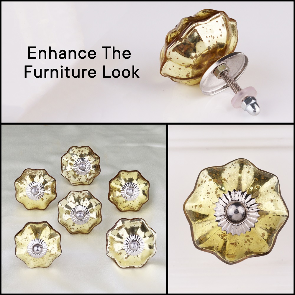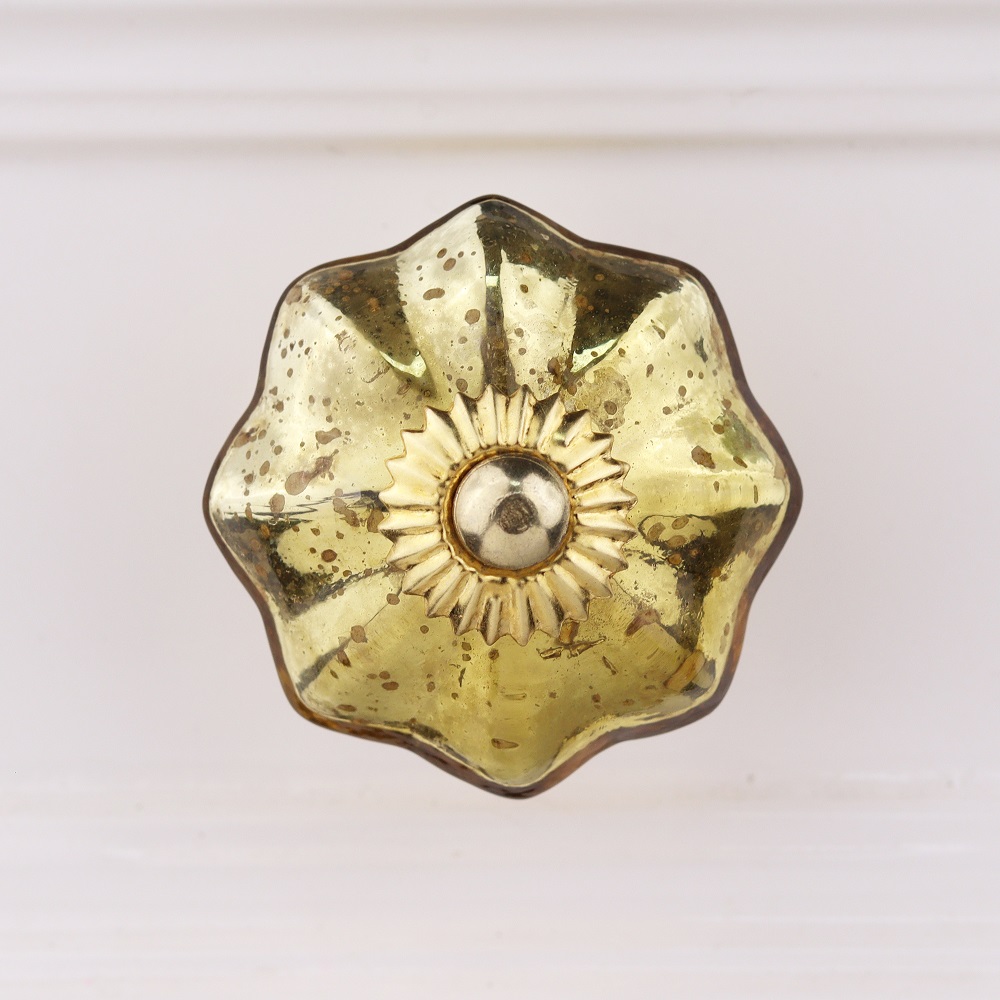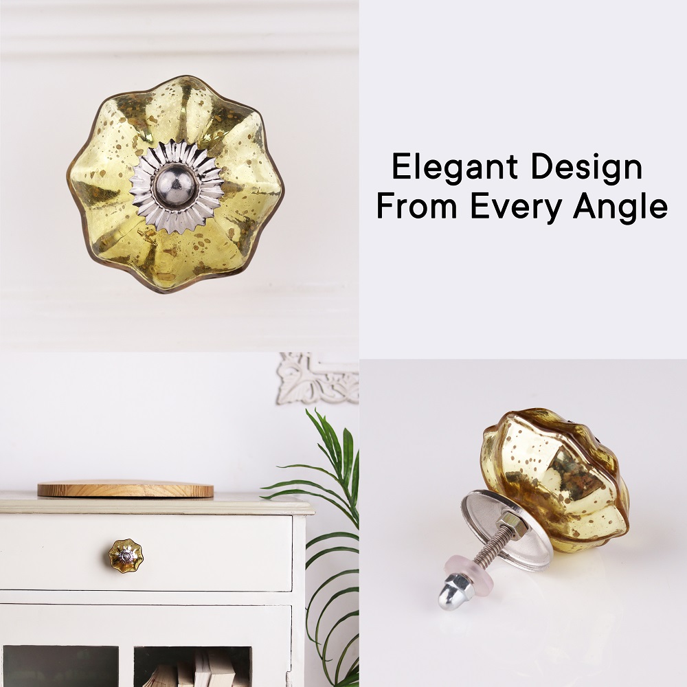 Made from high-quality glass and metal, the Antique Golden Glass Melon Cabinet Knob is designed to last. Its sturdy construction ensures that it will stand up to the rigors of everyday use, while maintaining its beauty over time. The high-quality glass not only gives the knob a lovely, translucent finish but also makes it durable enough to withstand wear. The gold detailing further enhances the knob’s strength and timeless aesthetic, making it a piece that lasts for years.