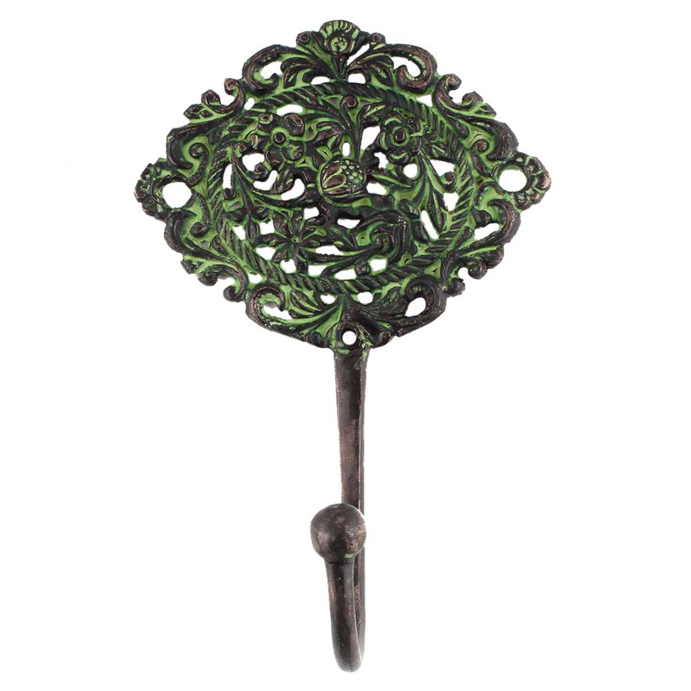 Antique Green Floral And Leaf Wall Brass Decorative Hook. When Put on Wall or Cabinet It is An Art in Itself. This Hook is Strong Enough to Hold Your Cloths, Keys, Tea Cups, Coffee Mugs, Hand Towels Etc.