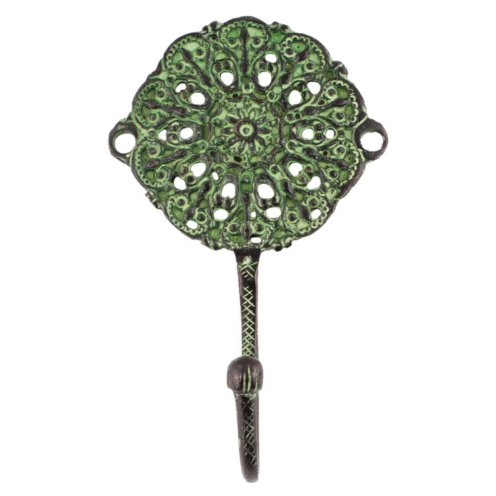 Antique Green Round Floral Wall Brass Decorative Hook. When Put on Wall or Cabinet It is An Art in Itself. This Hook is Strong Enough to Hold Your Cloths, Keys, Tea Cups, Coffee Mugs, Hand Towels Etc.