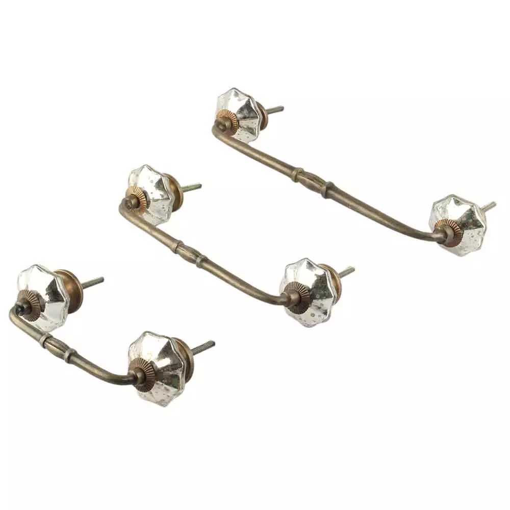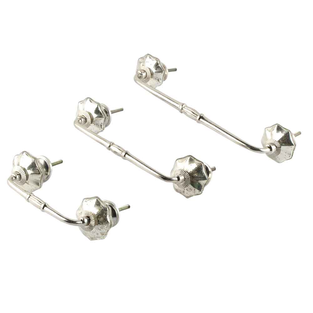 Antique Silver Glass Bridge Handle. Ideal for Drawer, Dresser, Cabinet, Wardrobe, Cupboard and Almirah.