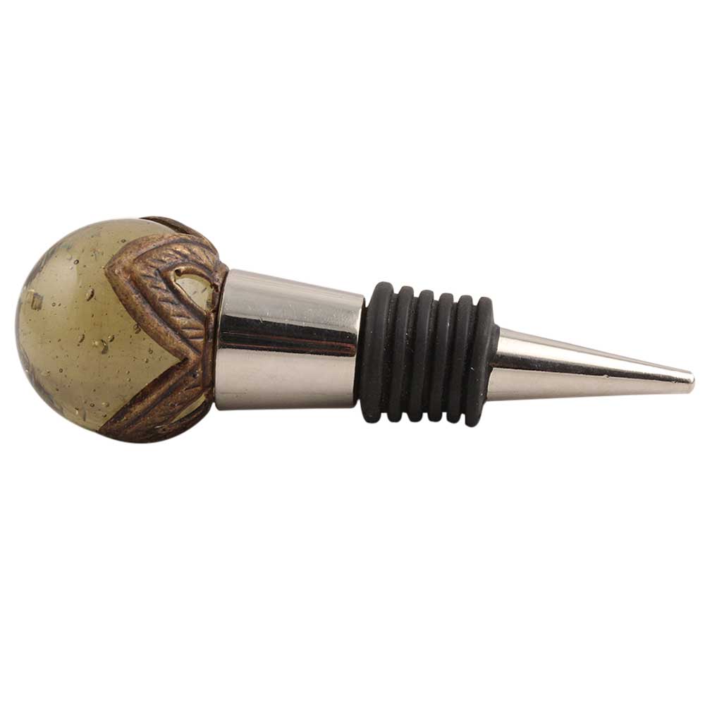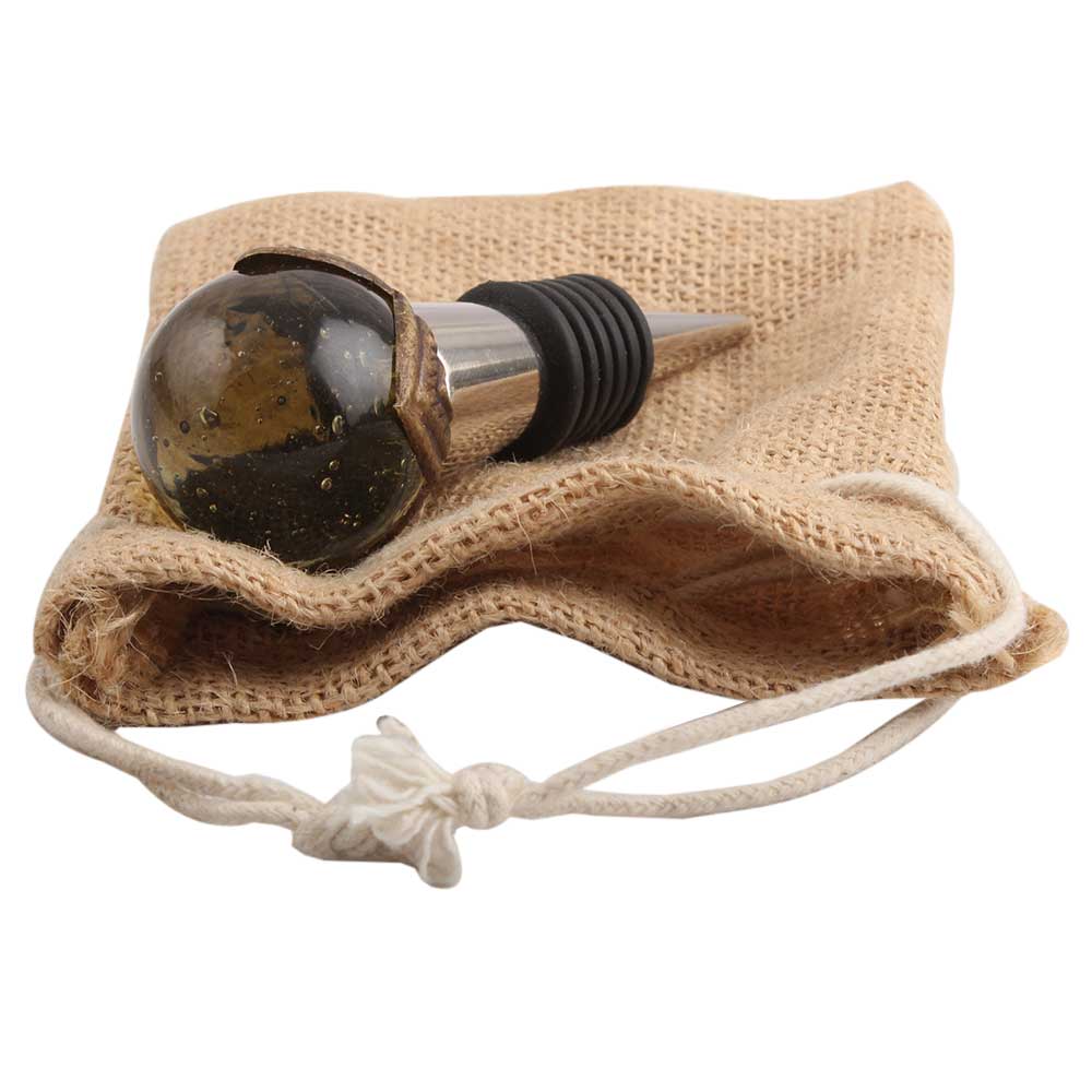 Antique Smoky Bubble Glass Wine Stopper.zinc alloy wine bottle stopper with attractive Jute Bag Packaging.