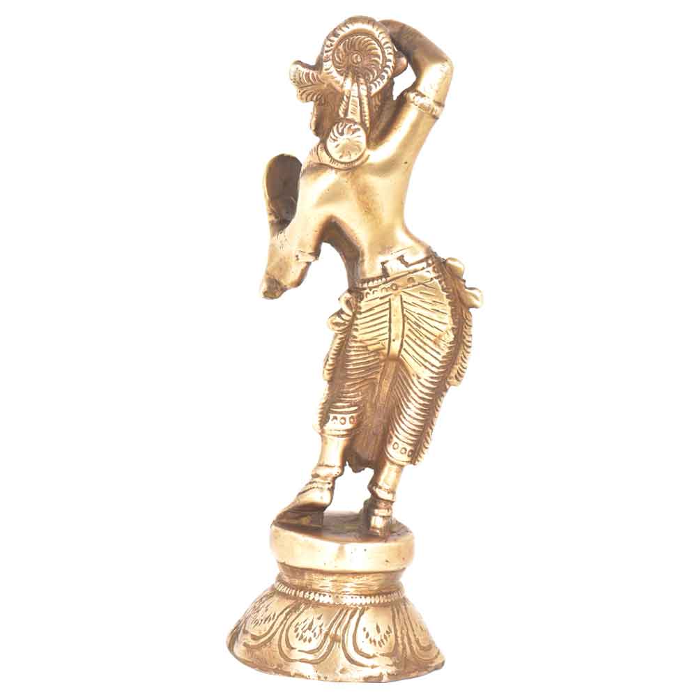 The brass Statue depicts a celestial damstel applying Vermillion the model reprented in the staute has been modelled on the lines of Khajuraho sculpture . Srangar rata nayika is holding a mirror on one hand and applying vermillion with the other.