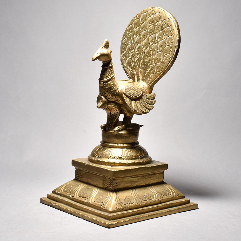 Bring the majestic beauty of India's national bird right into your home with this stunning Artistic Peacock Stand. Crafted by skilled artisans in South India, this exquisite piece is a true work of art that will captivate anyone who lays eyes on it. This artistic peacock stand is so much more than just a decorative piece - it's a magnificent statement of Indian culture and heritage that will elevate the style and ambiance of any room. Imagine placing your favorite plants, candles, or knickknacks atop this stunning pedestal, or using it to showcase treasured family photos or artwork.The perfect fusion of form and function, this peacock stand is a must-have for anyone who appreciates fine craftsmanship and the beauty of nature. Whether you're looking to add a touch of global flair to your living space or searching for a thoughtful housewarming or birthday gift, this piece is sure to impress. Bring the majestic elegance of India's national bird into your home today with this one-of-a-kind Artistic Peacock Stand.