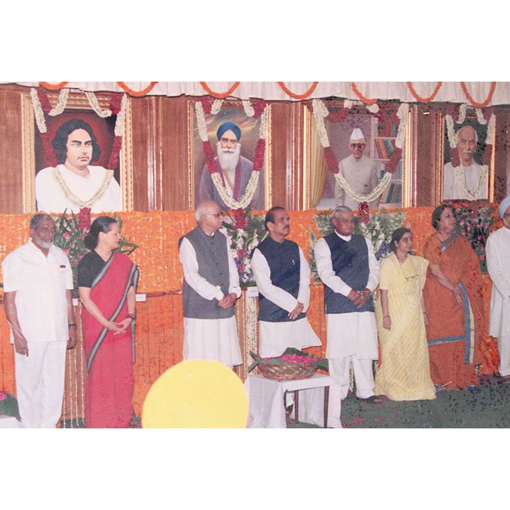 Vintage photograph of Manmohan Singh, the Chairperson, National Advisory Council, Smt. Sonia Gandhi, the Leader of Opposition in Lok Sabha, Smt. Sushma Swaraj and the Chairman.