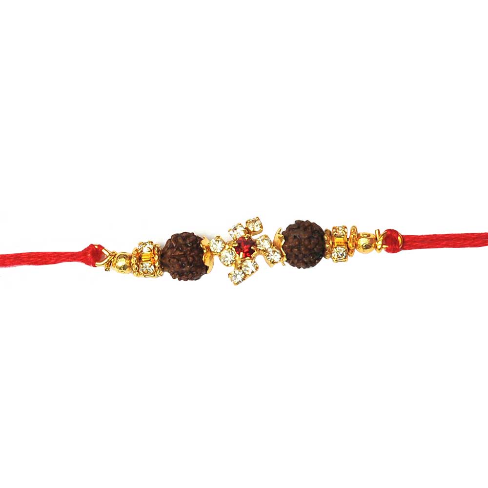 Auspicious Diamond Swastik Rakhi with Rudraksh