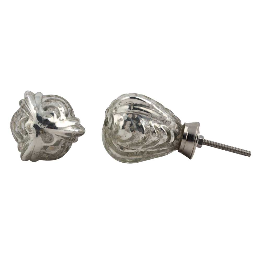 Avocado Silver Glass Knobs. Ideal for Drawer, Dresser, Cabinet, Wardrobe, Cupboard and Almirah.