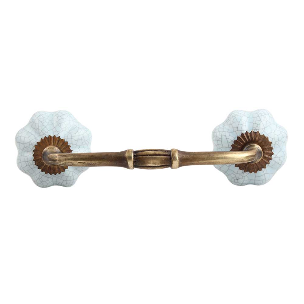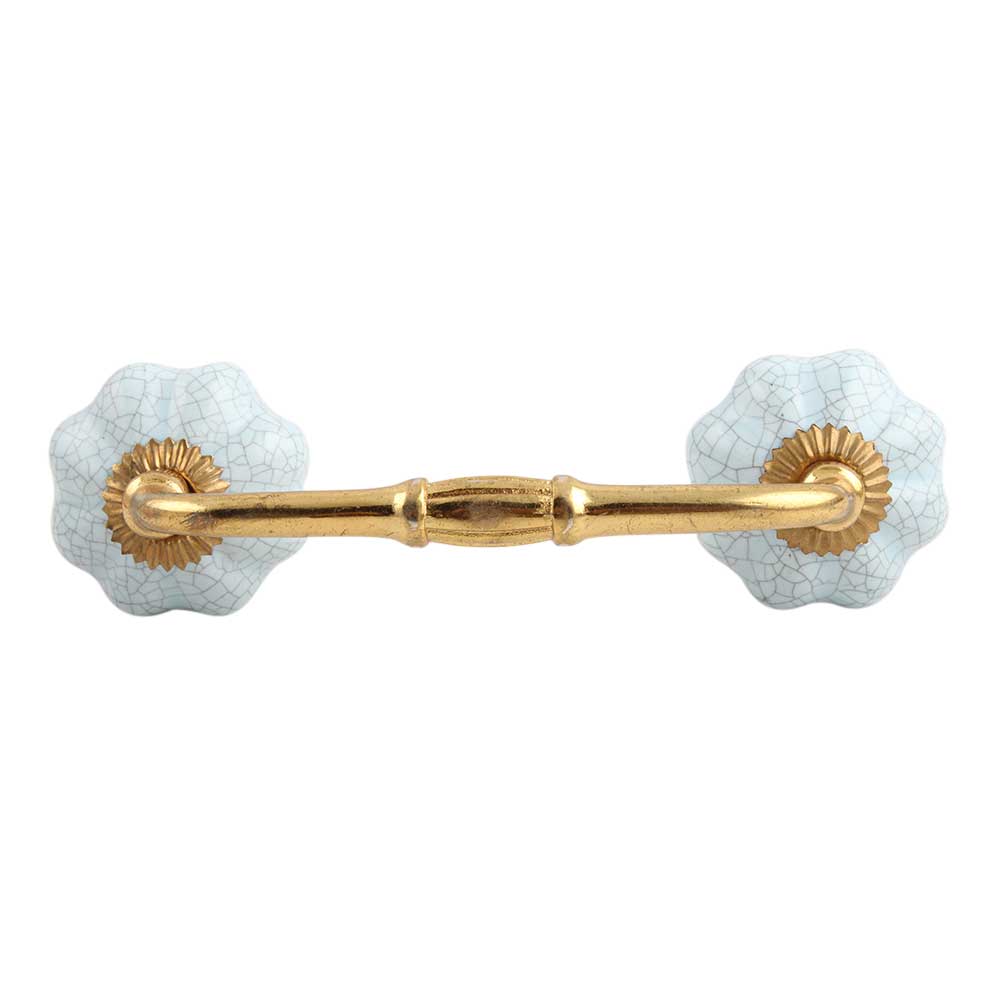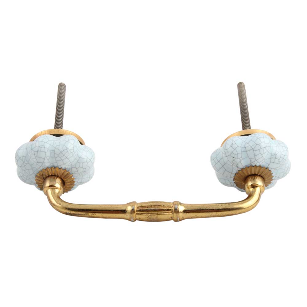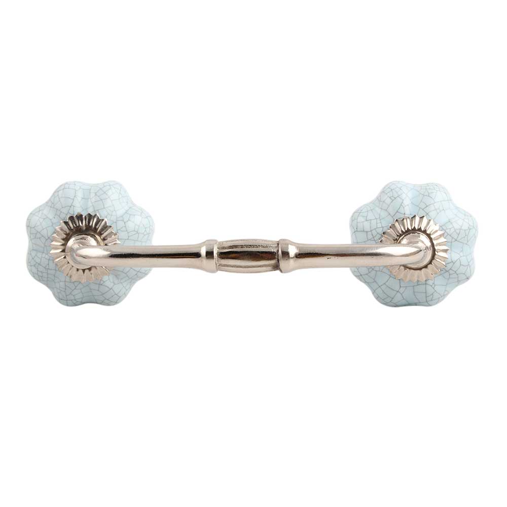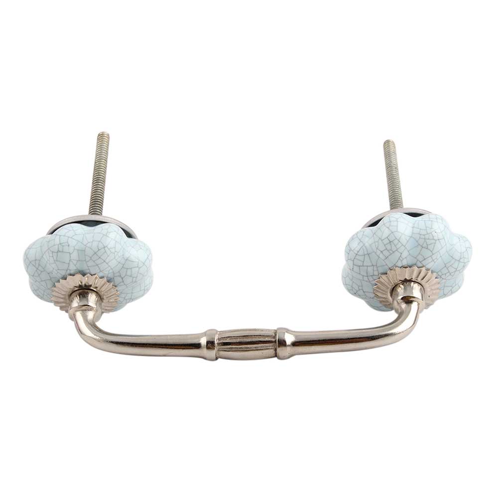 Baby Blue Crackle Ceramic Melon Bridge Handle. Ideal for Drawer, Dresser, Cabinet, Wardrobe, Cupboard and Almirah.