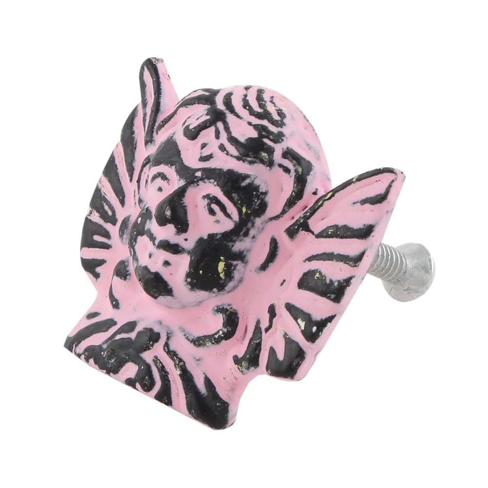 The Baby Pink Angel Distressed Iron Cabinet Knob features a stunning angel design in a soft, baby pink hue. The gentle color and intricate detailing of the angel make it a perfect choice for adding a touch of femininity and grace to any piece of furniture, whether in the bedroom, living room, or kitchen.