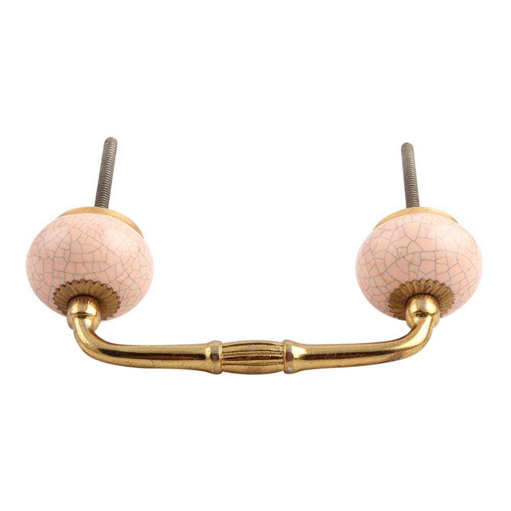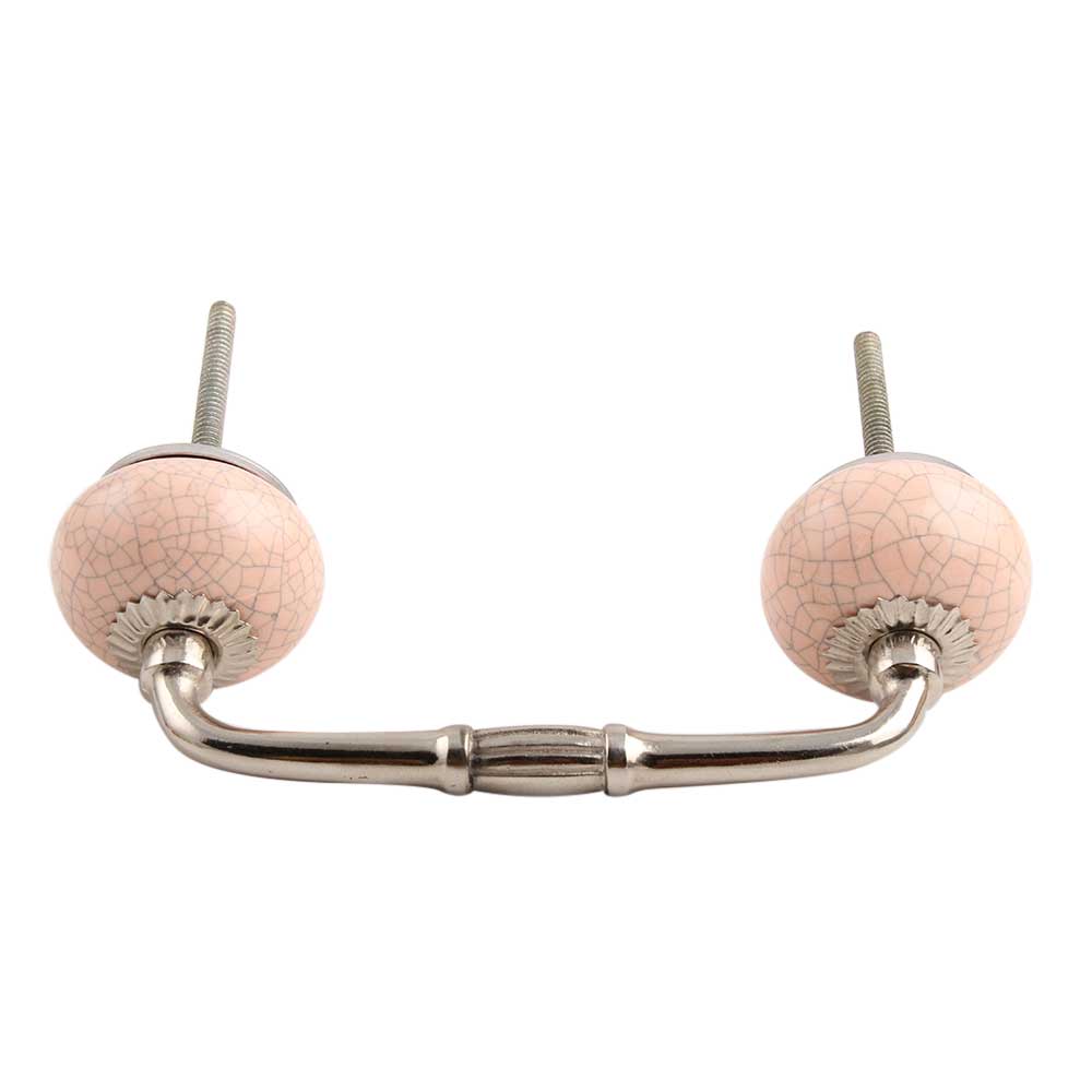 Baby Pink Crackle Ceramic Bridge Handle. Ideal for Drawer, Dresser, Cabinet, Wardrobe, Cupboard and Almirah.