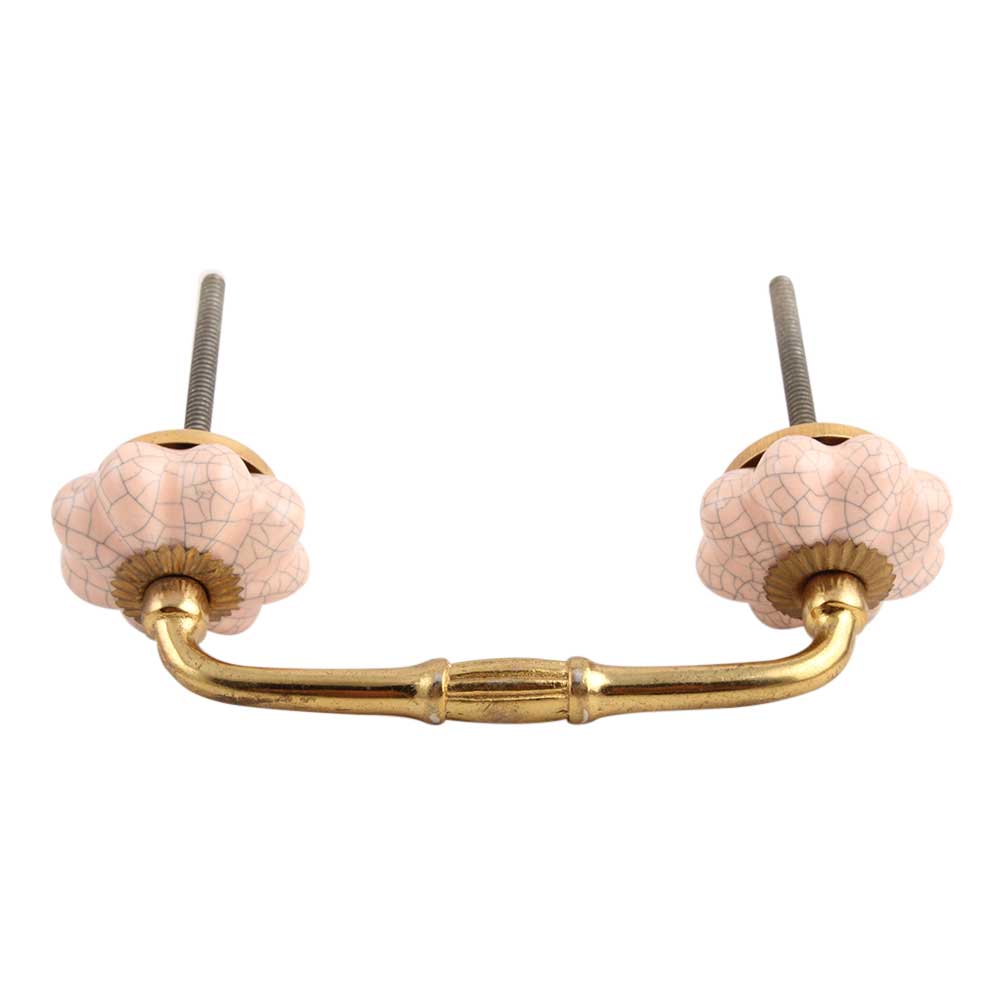 Baby Pink Crackle Ceramic Melon Bridge Handle. Ideal for Drawer, Dresser, Cabinet, Wardrobe, Cupboard and Almirah.
