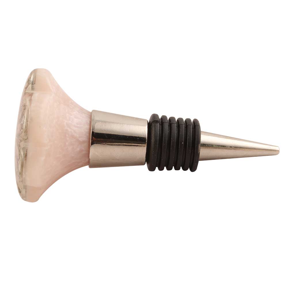 Baby Pink Flower Resin Wine Stopper. Zinc Alloy Wine Bottle Stopper with Attractive Jute Bag Packaging.
