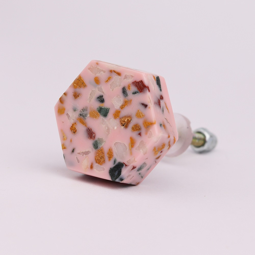 Transform your furniture with the Baby Pink Hexagon Terrazzo Marble Round Cabinet Knobs. Their chic design and soft baby pink color add an elegant yet fun touch, perfect for any room that needs a little extra style and charm.