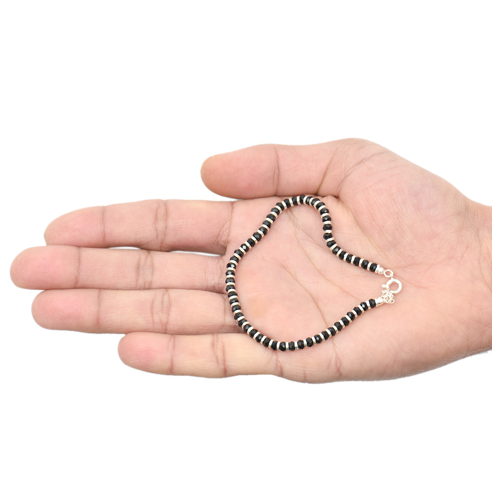 This 92.7 sterling silver bracelet with black beads would make an impressive and sensitive gift for a friend, sister, mother, or wife. Suitable for a party, the office, or everyday wear. Women's nazariya bracelet is adjustable. Ideal for gifting.
