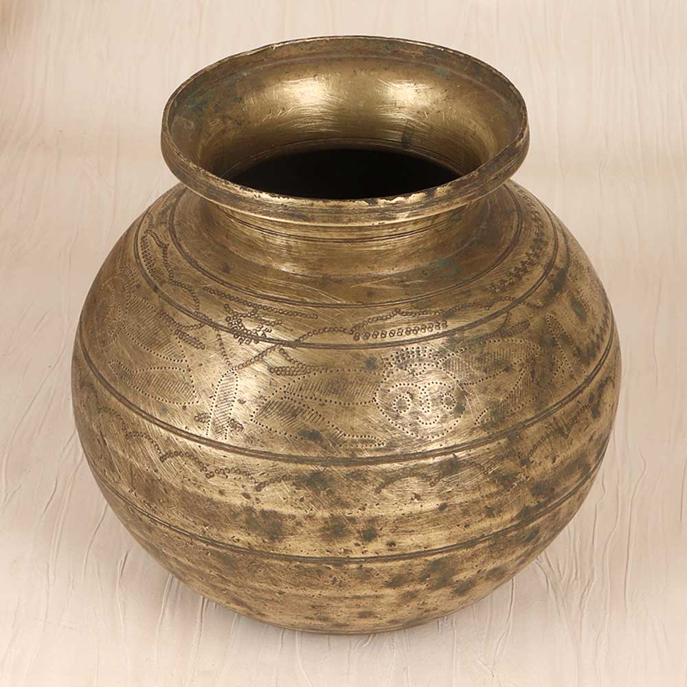 Make a statement of faith with this antique-style engraved brass holy water pot. Its exquisite South Indian styling and vintage patina give it an heirloom look that feels steeped in tradition. This pot's elegance and exotic flair make it far more than just a functional vessel - it's a meaningful symbol of spirituality. Place it in an entryway or prayer space to set a reverent mood. The soothing sound of holy water pouring from its curved spout enhances moments of quiet contemplation. Its engraved artwork is sure to spark conversation and admiration from guests. Bring a touch of sacred tradition into your home with this handcrafted treasure. If you want an heirloom-quality piece that honors your faith and cultural roots, its spiritual resonance and artisanal appeal is sure to delight. Make this holy water pot the graceful focal point it deserves to be.