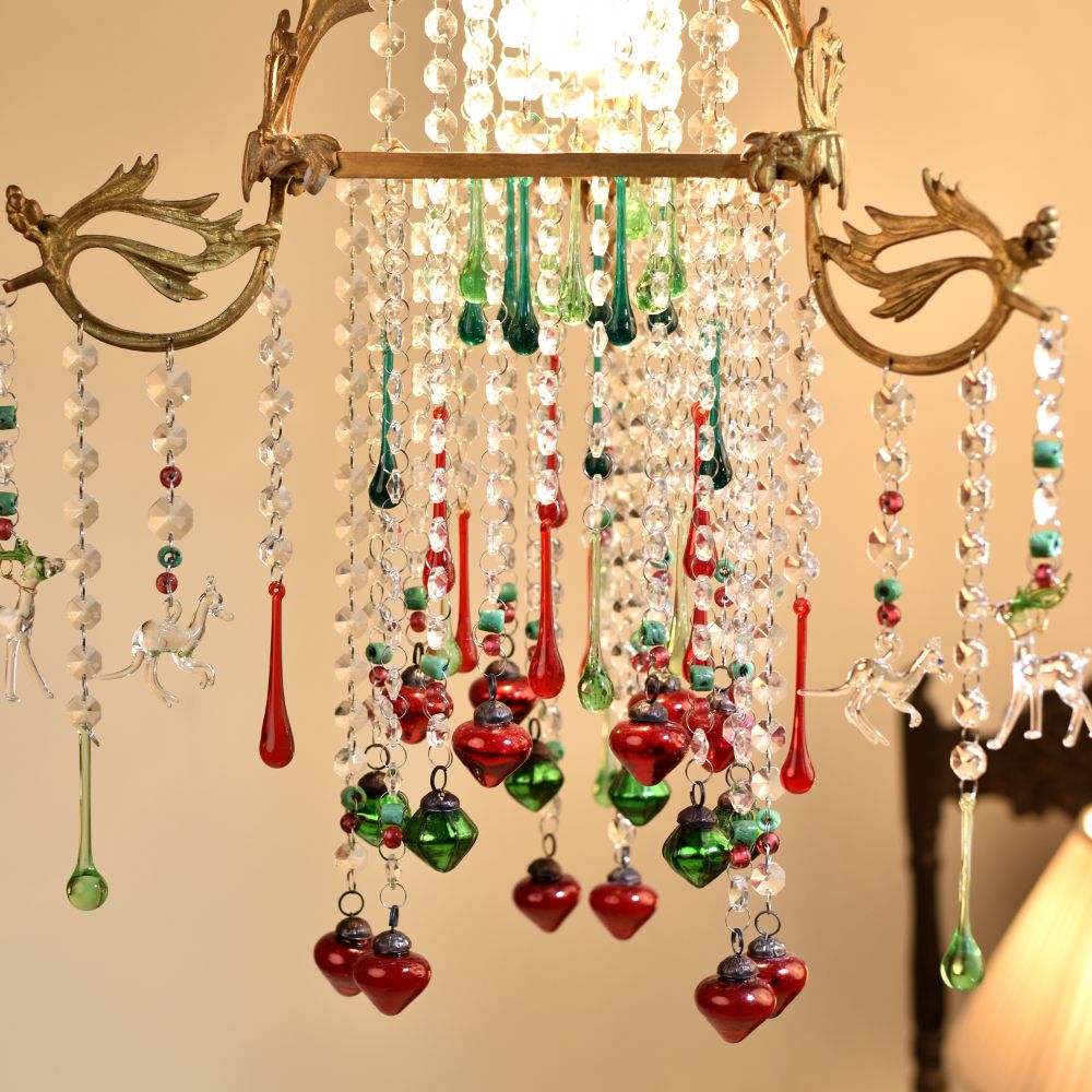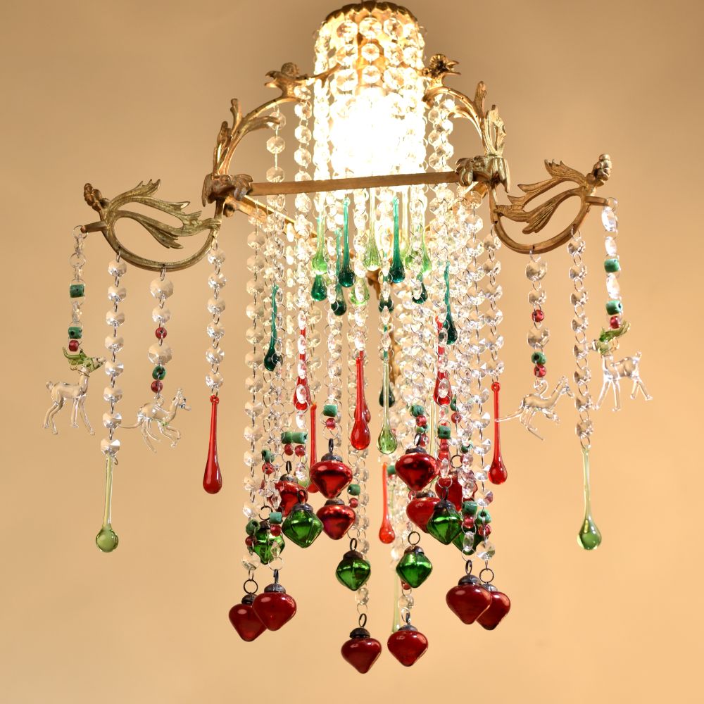 Buy a Crystal Clear Glass and Brass Chandelier online which is a timeless piece of artistry that seamlessly blends elegance and charm. Crafted with precision from premium-quality brass and crystal-clear glass, this chandelier is a stunning addition to any space, be it your home, restaurant, hotel, or cafe. At its core, the chandelier holds a radiant bulb that illuminates the surrounding area with a soft, warm glow, creating a welcoming ambiance for all. Surrounding the central light source are delicately designed hanging animal glass ornaments, each adorned with a captivating crystal clear finish that reflects and refracts light, enhancing its splendour. Adding a playful touch, the chandelier features multi-coloured hanging accents that add a burst of vibrancy and liveliness to any setting. This chandelier's adorable design makes it an enchanting focal point, becoming an eye-catching decoration for any room. Its versatility knows no bounds; it elevates the ambiance of your home, adds opulence to the dining experience in a restaurant, impresses guests in a hotel's grand foyer, and brings a touch of whimsy to a cafe's decor. Furthermore, this stunning chandelier makes for an ideal gift for your loved ones on special, festive, or auspicious occasions. By gifting this masterpiece, you share not only a captivating decoration but also the essence of elegance and sophistication. Let the Crystal Clear Brass and Glass Chandelier illuminate your space, taking it to new heights of beauty, charm, and grandeur, leaving everyone captivated by its timeless allure.